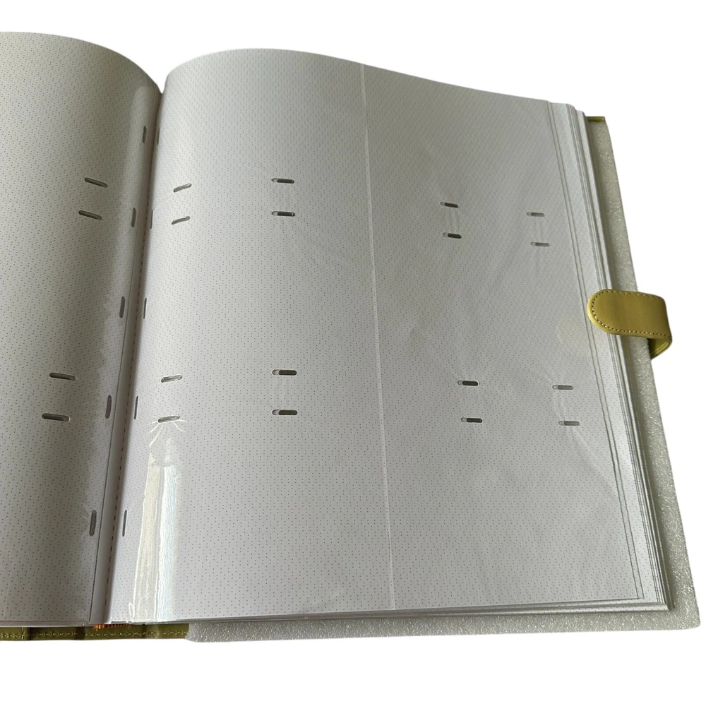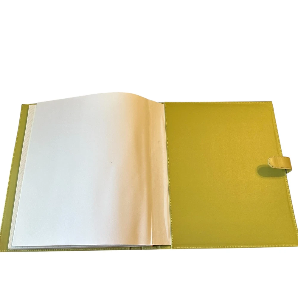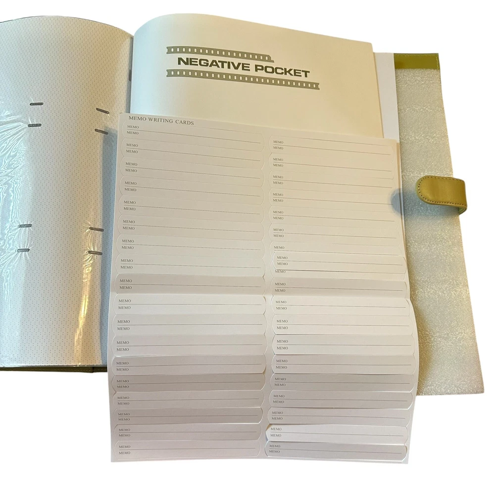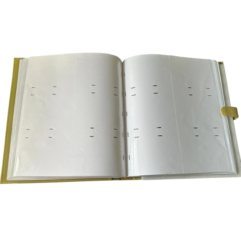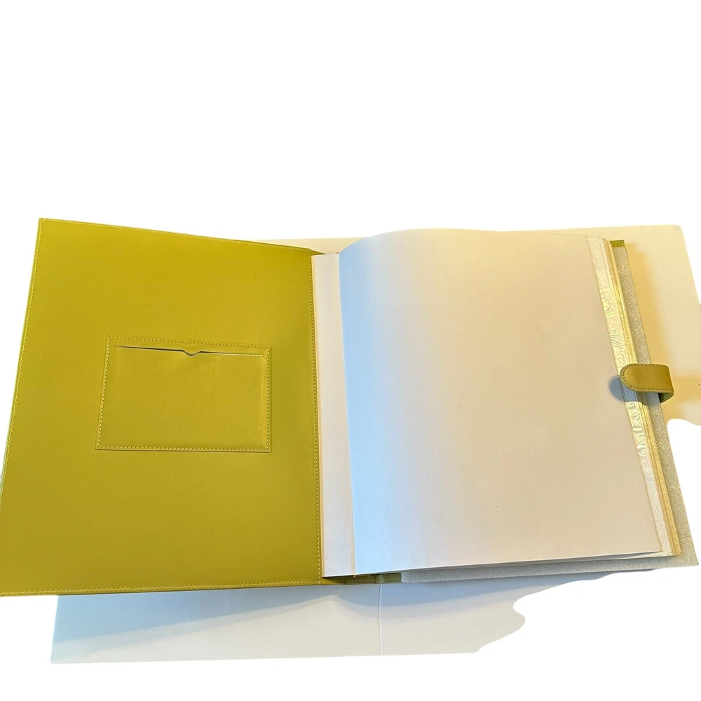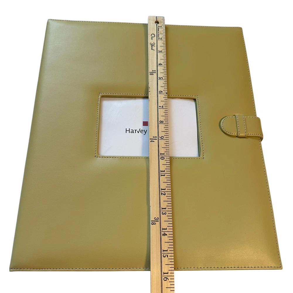 Harvey Lewis Leather Photo Album for 4"x6" Photos. Holds a total of 360 photos. Includes description slips and a pocket for negatives. Album is 15.5" tall and 13.5" wide and is a pea green color. Pre-owned but new and never used in original box. Please see photos to evaluate overall condition. Sold as is.