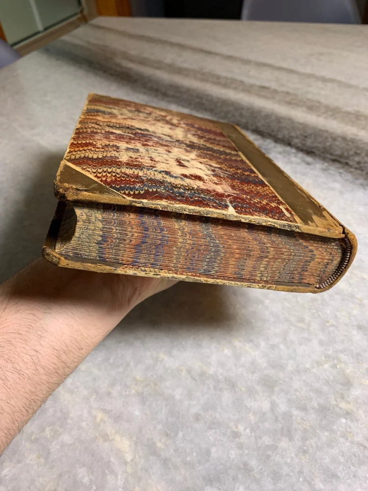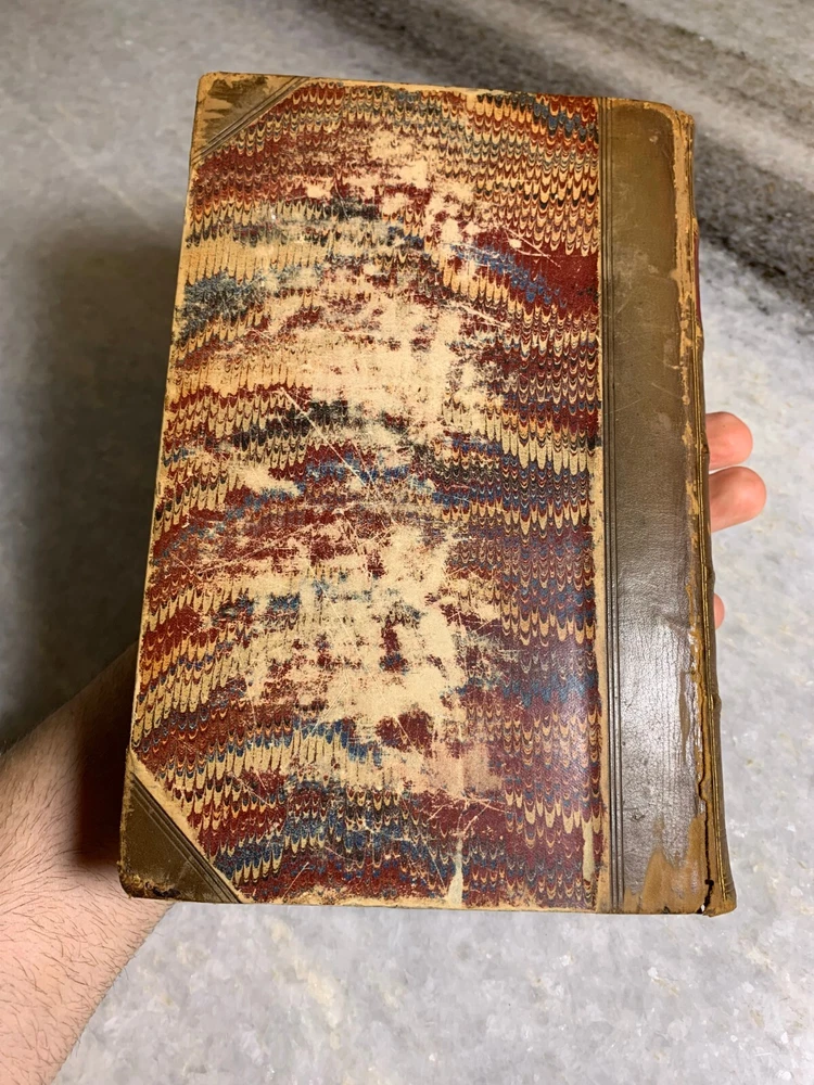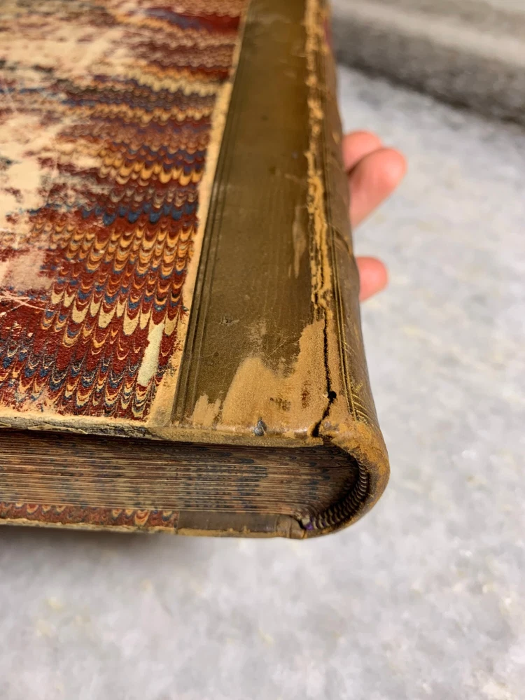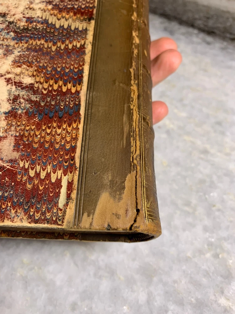 Antique 1869 Ornate Gilded Leather Marblized 8.75" T x 6" W 529 Pages...
