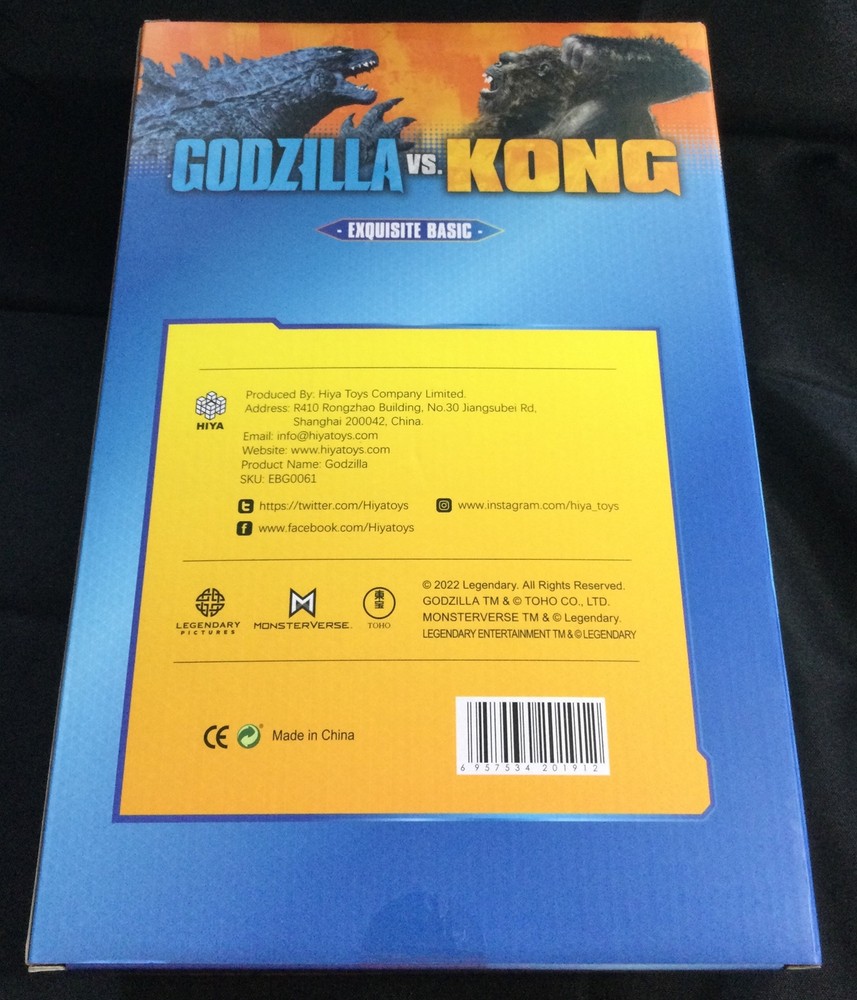 This is a Hiya Toys Godzilla figure from 2021, specifically the V2 Exquisite Basic Godzilla vs Kong version. It is designed for collectors aged 17 years and up, showcasing the Godzilla theme. The item is manufactured in China and is brand new in box (NIB). It is being sold by a US seller.