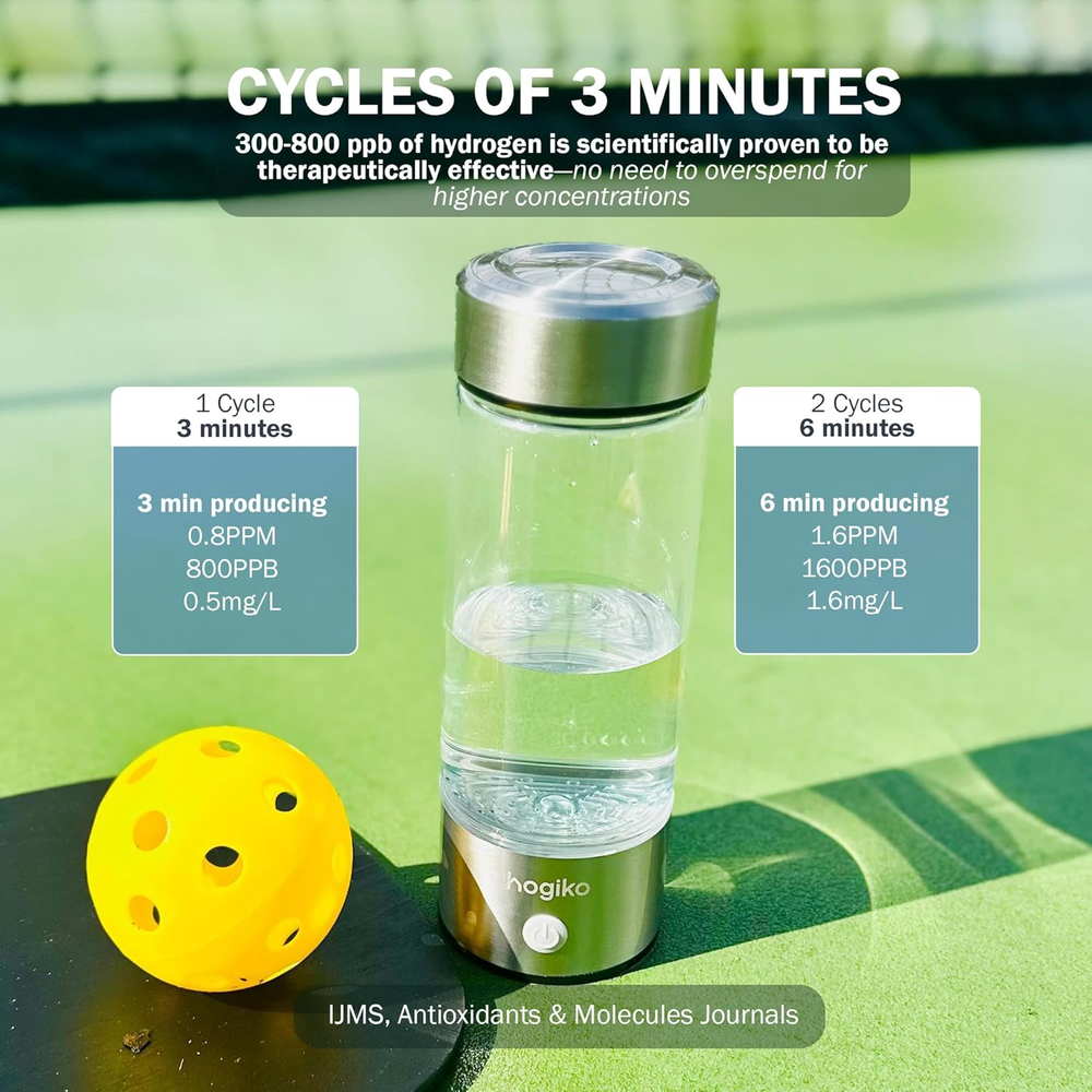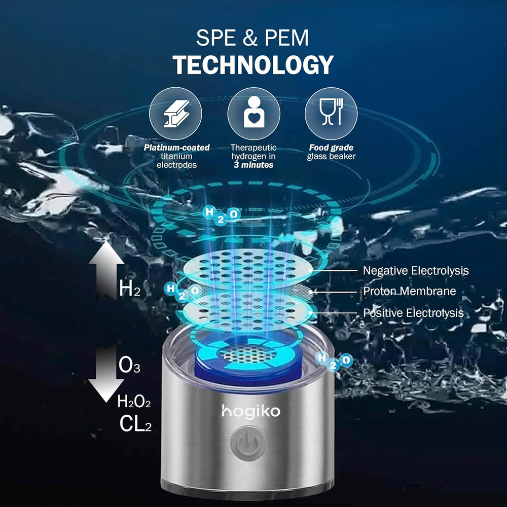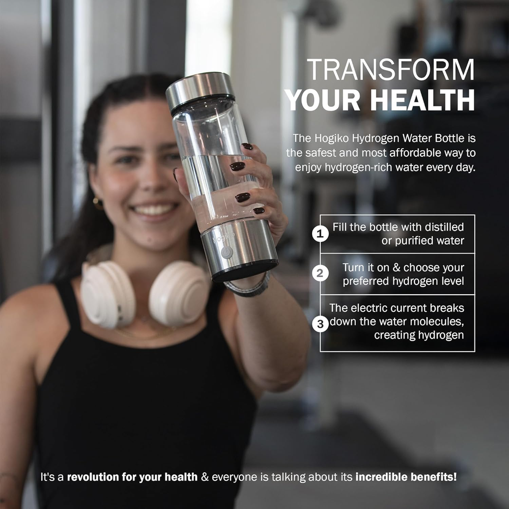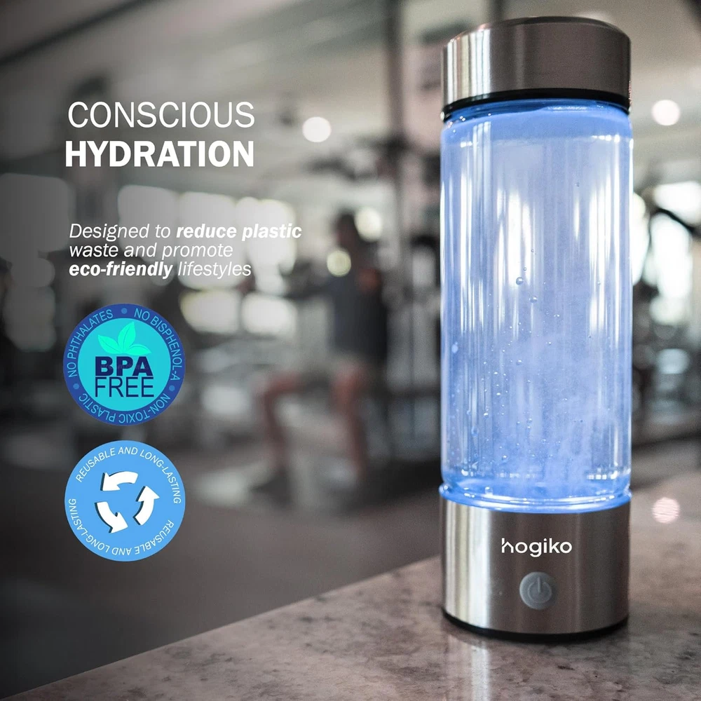 Store New Arrivals Add to Favorite View Feedback Contact Hogiko’S Hydrogen Water Bottle Generator Machine, Water Ionizer Made in USA Description Item model number Hydrogen Water Bottle Generator Machine Model Name Hydrogen Water Bottle Generator Machine Power Source Battery Powered Upper Temperature Rating 1.6E+2 Degrees Fahrenheit Product Dimensions 2.5"L x 2.5"W x 8.5"H Country of Origin China Global Trade Identification Number 86001249250300 Installation Type Countertop Included Components Bottle, cable, charger Purification Method Distillation Package Information Bottle Manufacturer Hogiko Special Feature Portable, Lightweight, Leak Proof Brand Hogiko Material Polycarbonate Capacity 420 Milliliters 💧 "300-800 ppb of hydrogen is scientifically proven to be therapeutically effective—no need to overspend for higher concentrations." - IJMS, Antioxidants & Molecules Journals 💧 Hogiko's Hydrogen Water Bottle works through a process called electrolysis. This process uses a proton exchange membrane (PEM) and water splitting electrolysis (SPE) technology to generate molecular hydrogen (H2) from water. 💧 Cutting-Edge Tech, Premium Craftsmanship: Hogiko employs state-of-the-art Solid Polymer Electrolysis (SPE) and Proton Exchange Membrane (PEM) technologies. These ensure therapeutic levels of molecular hydrogen, backed by platinum-coated titanium electrodes for top-tier quality. 💧 Your Portable Wellness Ally: Wherever your journey takes you, Hogiko is by your side. Lightweight and compact, it provides advanced molecular healing for an active lifestyle, ensuring wellness on the go with unmatched ease. 💧 Sustainability Matters: Prioritize safety and the environment with Hogiko. Crafted from BPA-free, food-grade polycarbonate plastic, it promotes eco-consciousness while guaranteeing durability and safety—a trusted choice for all your hydration needs. 💧 On-the-Go Hydrogen Infuser: Leading the global wave of hydrogen-enriched hydration, Hogiko brings unparalleled convenience and reliability, setting the gold standard for wellness solutions on the move. 💧 Revitalize Your Energy: Rediscover your zest for life with Hogiko. Each sip of its hydrogen-infused water delivers sustained energy, sharper focus, and relief from joint discomfort—empowering you to embrace life with renewed vitality. Product Description ABOUT US We offer the best prices around on high quality products. Our E-store includes media such as books, movies, music and games while offering electronics, toys, sporting apparel, clothing, tools, general home, garden items and more. SHIPPING We are always working hard to ensure your package arrives as soon as possible. Please understand that some factors like weather, high postal traffic, and the performance of shipping companies are outside of our control. We offer free shipping to the lower 48 states and ship within 2 business days of payment, usually sooner. We do not accept P.O. Boxes. Please provide a physical address. RETURNS We offer a 30-Day Return Policy on items which you are not completely satisfied with. You have the option for a full-refund or an exchange of the item. No returns are available on items shipped outside of the USA. PAYMENT We accept PayPal. CONTACT US This page content is yet to come Please ad us to your favorite seller and visit again later Thank You CUSTOMER SATISFACTION We try our very best to make sure every customer is completely satisfied. If there's a problem, message us! We're happy to help.