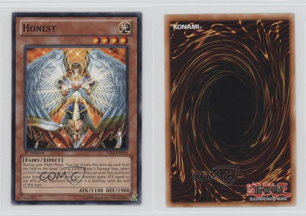 2014 Yu-Gi-Oh! Realm of Light - Structure Deck [Base] - 1st Edition #SDLI-EN016 Honest COMC Item: 29798204 - YuGiOh Card - Featuring Honest Search for more: 2014 Yu-Gi-Oh! Realm of Light Search for more: 2014 Yu-Gi-Oh! Realm of Light - Structure Deck [Base] - 1st Edition View all of our Listings Auctions Buy It Now About Us Located in the beautiful Pacific Northwest, COMC (Check Out My Cards) is the world's largest consignment service for trading card singles. More than 10,000 people have used our consignment service to list over 50 million trading cards. Find out how we can help you consign your items on eBay by contacting us through eBay messaging. COMC -- "The Safe & Easy Way to Buy & Sell" Raw Condition for Modern Cards Unless otherwise noted, raw modern cards are listed in Near Mint-Mint condition or better. A NM-MT card appears to be Mint at first glance, but upon closer inspection, may exhibit some of the following: minor print defects (e.g. roller marks, print line, dimple), minor scratches, slight edge wear, and slight corner wear. Centering is clearly visible in the images provided and does not factor into our condition assessment. Raw Condition for Vintage Cards Unless otherwise noted, raw vintage cards are listed in Excellent condition or better. An EX card may exhibit some of the following: minor rounding of corners, surface wear, print defects, light scratches, and slight edge wear/chipping. Centering is clearly visible in the images provided and does not factor into our condition assessment. Domestic Shipping Combined shipping for multiple items is available. To receive combined shipping, please ensure all desired items are in your eBay shopping cart before proceeding to checkout. eBay limits orders to 40 items per order. We automatically combine multiple orders placed on the same day. If you place multiple orders on the same day, please contact us to request a refund of applicable shipping costs. Signature confirmation may be required on invoices over $400. All cards are protected and shipped securely. International Shipping COMC offers eBay's International Shipping (EIS) for international orders under $2,500* (see country exceptions below). All duties and import fees are paid at checkout; in the rare event that there are additional import fees upon delivery, these are borne by the buyer. EIS packages route through a shipping hub in Erlanger, KY before shipping to their final destination. Please note that EIS does not allow for combined shipments. The shipping rates are determined by eBay and cannot be adjusted. *Maximum sale price exceptions: Colombia, Kuwait ($2,000); Taiwan ($1,539); Chile, Costa Rica, Guatemala, Honduras, Trinidad and Tobago ($1,000); Antigua and Barbuda, Aruba, Belize, Dominica, Grenada, Philippines, Saint Kitts and Nevis, Saint Lucia, Montserrat, Turks and Caicos Islands ($500); Dominican Republic, El Salvador ($200). Please request a shipping quote through eBay messaging for orders that exceed the maximum sale price supported by eBay's International Shipping. You will be responsible for all duties and import fees for international orders shipped outside the EIS. All cards are protected and shipped securely. Payment COMC does not accept offers on our cards through our eBay storefront. COMC utilizes eBay’s managed payments system. If you are experiencing difficulties making a payment, please contact eBay for assistance. Return Policy Returns are only accepted on the rare occasion the item is not as described. If you are making a return, please initiate the return process through eBay so a mailing label can be provided for you. Prior to listing, our expert team carefully assessed this item to represent it accurately. Please review the description and high-definition images prior to purchasing to ensure this item meets your satisfaction. We welcome you to contact us if you have further questions about this item. Trust and Integrity COMC carefully assesses each item consigned to us to prevent fraudulent items from entering the marketplace. If you believe an item offered on COMC may be fraudulent, please contact us with details so we can investigate the issue. Items we determine are outside our supported items policy may be removed. Last Modified: 6/3/2025 4:05:09 PM PDT