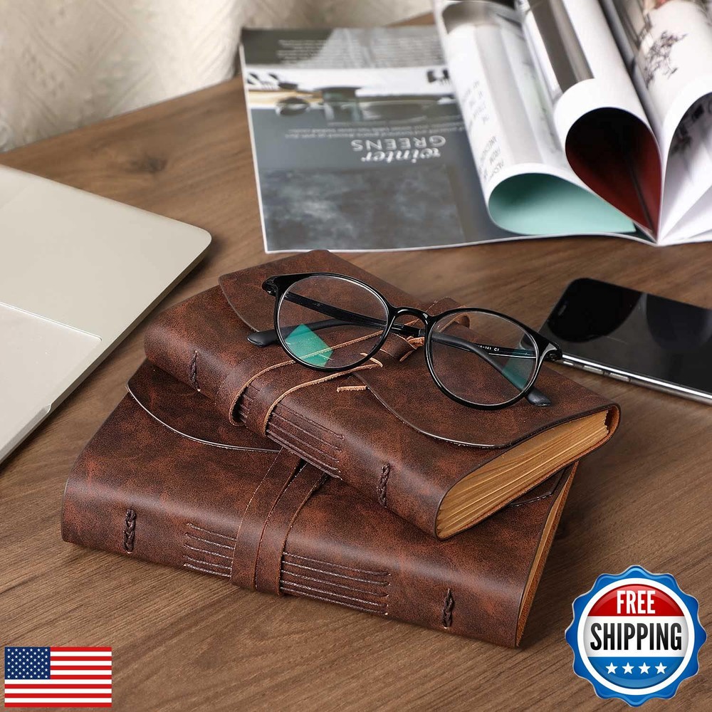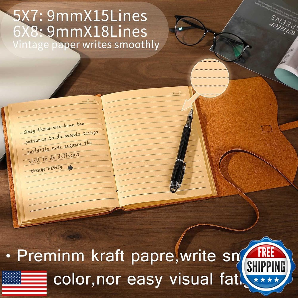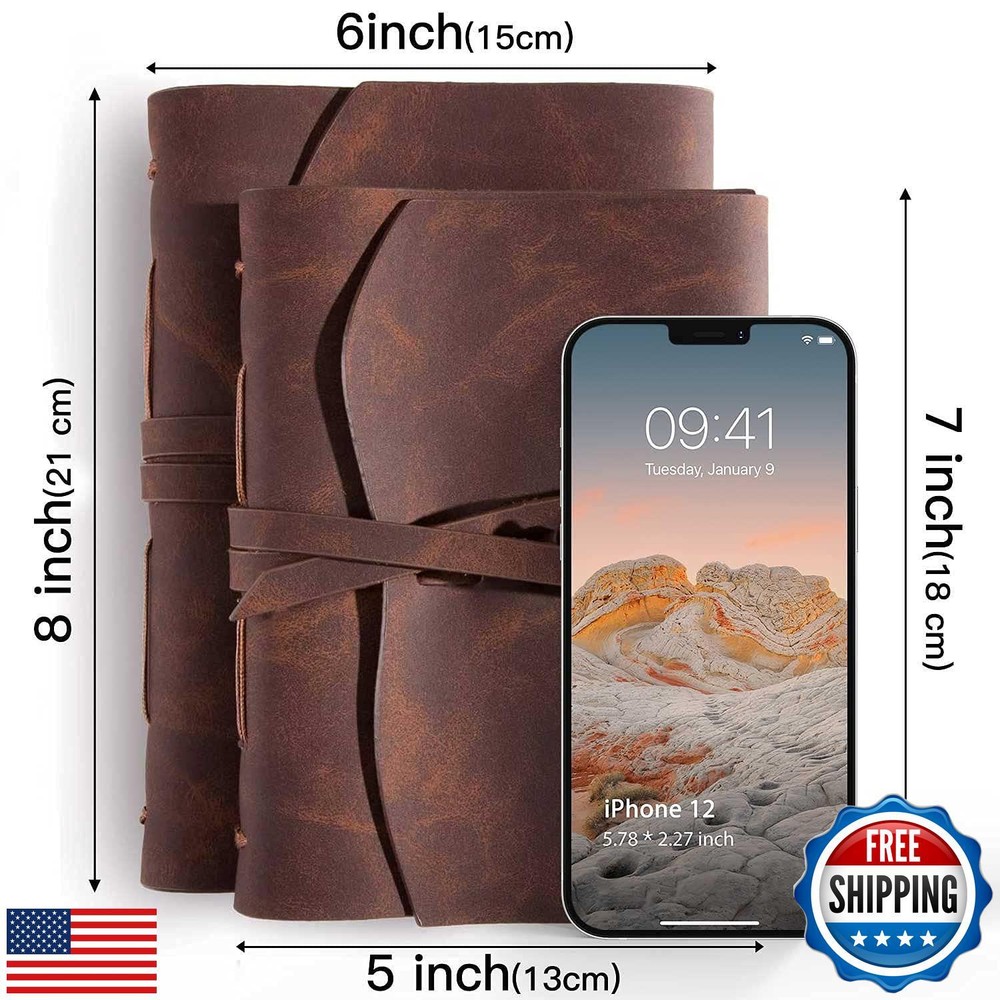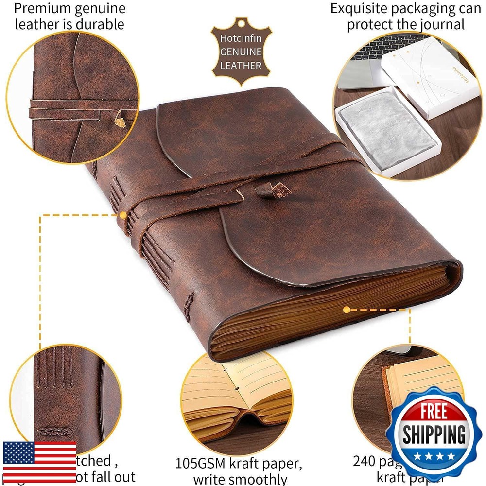Hotcinfin Leather Bound Journal for Men/Women, Rustic Vintage Handmade Large Writing Notebook with 240 Kraft Lined Pages(5x7 inches), Business/Travel Daily Notepad Sketchbook Gift - Brown...