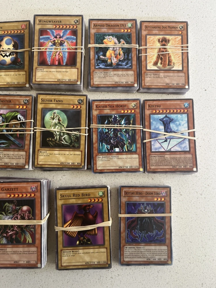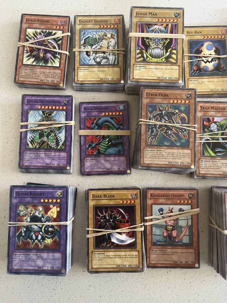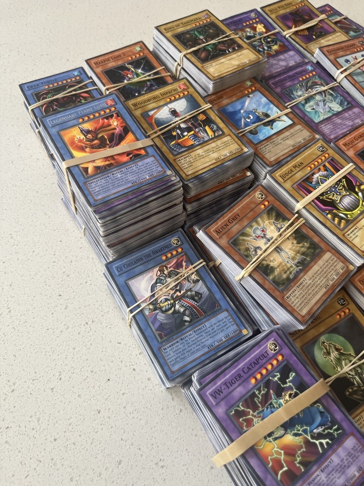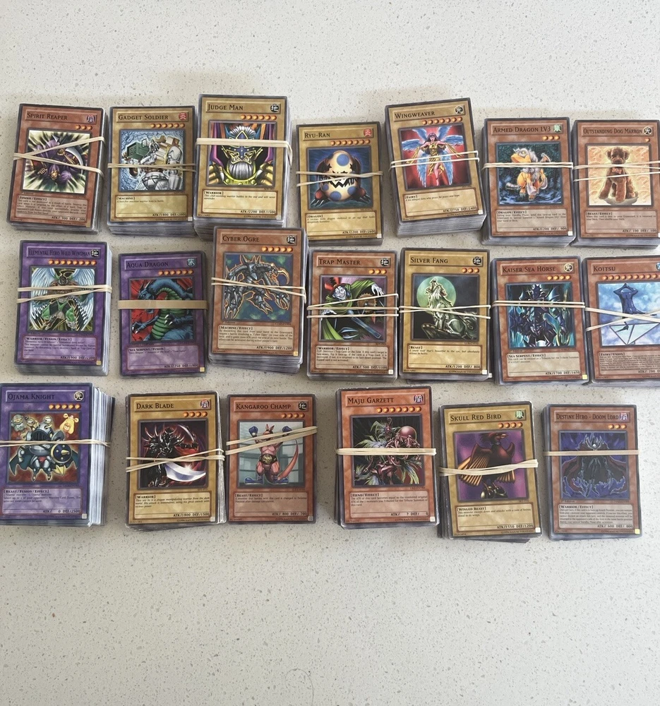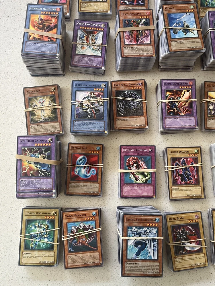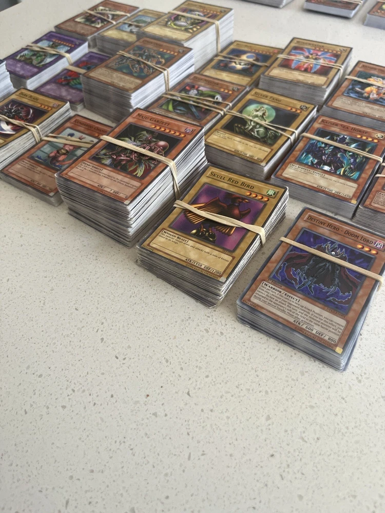 All cards in pictures will be included. All 3000+ cards are vintage and from the early 2000’s. NOTHING MODERN. These cards are from the first sets of TCG Yugioh and have been collected for many years. All cards have been organized by their sets such as LOB, MRD, PSV. All cards are in good condition considering most to be 20+ years old. There are Rares and commons in this collection. Please message me and questions. Will be shipped same day as purchase. Here is the list of cards sets are in this collection. LOB, MRL, MRD, DCR, IOC, LON, PSV, DCR, MFC DR04, SD09, DR1, DR2 DR3, RDS, DB2, DP04, YSD, DP1, POTD, SD6, CRV, EOJ, FOTB, SD4, POTD, STON, EP1, SDJ, SD7, DP2, EEN, DB1, SD10, SD1, SD5, SD8, SD3, TLM, SDP, SOI, YSDS, AST, SD6, PGD, SD2, SDK, SRL, SOD, DP03, MDP2, CDIP, SDY, SDRL, TAEV, SYE, FET, DR1, SKE, DP05