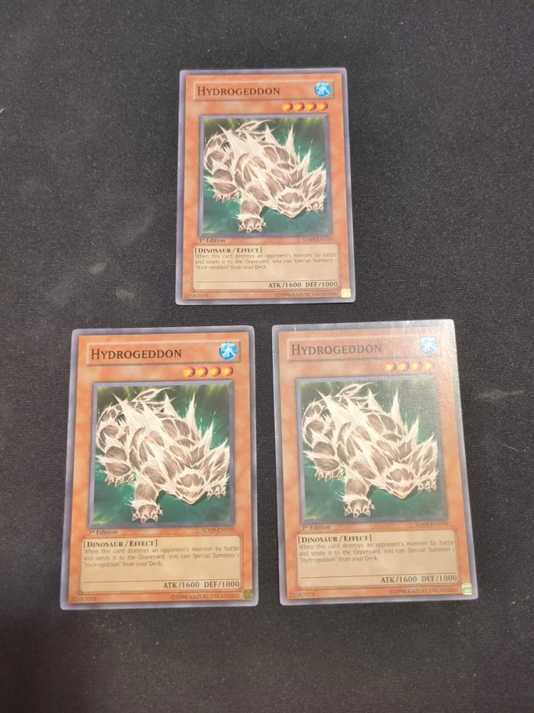 x3 Playset of Hydrogeddon! Card is in great condition, shown in the pictures above. Every purchase will include one free, random card as well! Shipping with tracking will be provided via eBay Standard Envelope. Cards are packaged in both a soft and hard case as shown in the last picture.