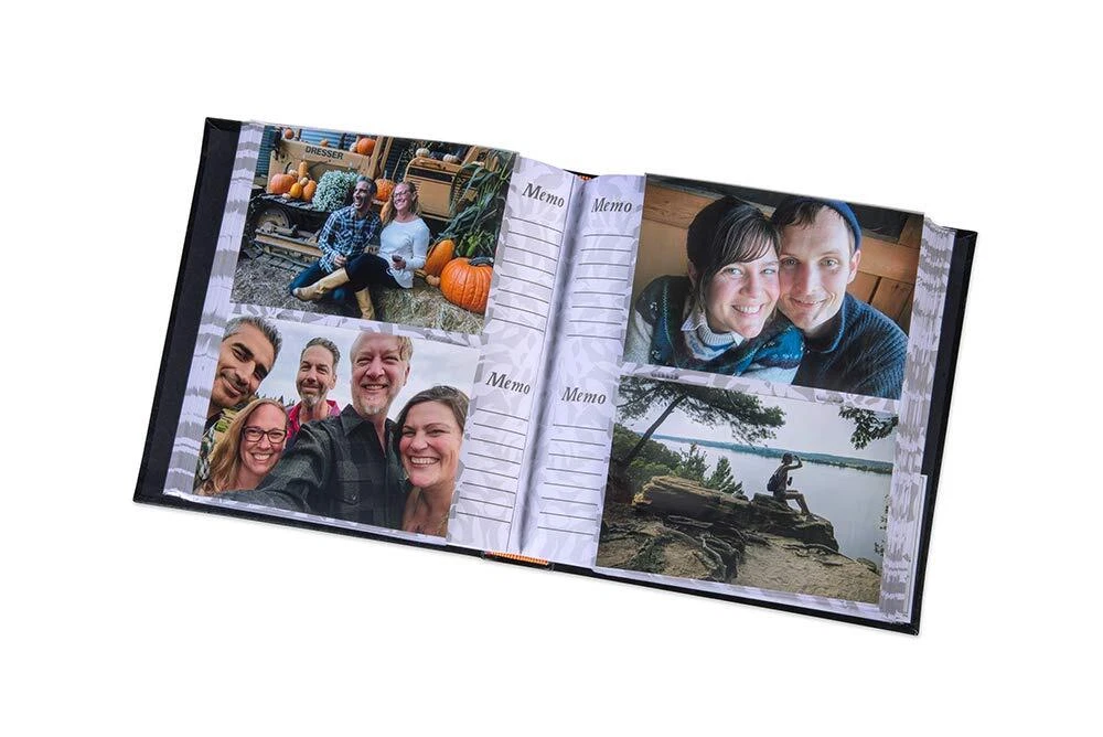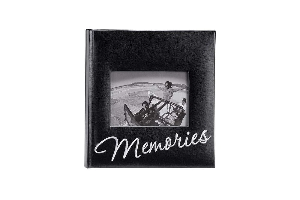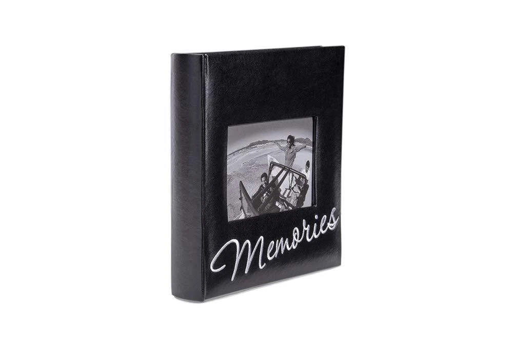 Keep a remembrance of all the special memories in your life with this classic embroidered "Memories" Album. The beautiful, hardcover album features elegant white embroidery on black faux leather. The cover also showcases a 5“ x 3.5” display opening for a 5.5” x 4” photograph which easily slides in from the inside cover. This book-bound album is a great way to display your photos and caption each memory with included memo writing areas on each page. Holds 160 horizontal photos. A CD storage pocket on the inside of the back cover conveniently holds 1 CD. Preserve your memories with International Designs sentiment 2 Up albums. CONTEMPORARY DESIGN: 2 Up 4x6 Book-bound album with Memo writing area ; Black faux leather with embroidered white accents PREMIUM QUALITY MATERIALS: Faux leather hardcover; white embroidered word; Smooth finish; Acid, Lignin and PVC free pages ELEGANT LOOK: Black; Book-bound album; Holds (160) 4” x 6“ horizontal photos (2-up on a page); Features memo writing area on each page; Cover display opening is 5“ x 3.5” for a 5.5” x 4” photograph; CD Storage pocket inside back cover; Product Dimensions: 8.75” (W) x 8.25” (H) x 2” (D) PERFECT FOR EVERY APPLICATION: Displays on a tabletop or shelf making it functional in a variety of locations around a home or office SECURE PACKAGING: Shipped in heavy duty packaging that helps ensure safe delivery Book bound album Holds up to 50 photos Two-up 4-inch by 6-inch photos Embroidered lettering Capture those special moments
