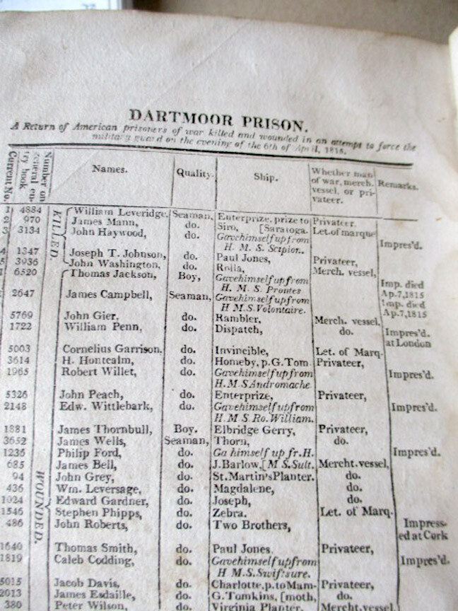 ENLARGED PICTURES!! Please scroll ALL the way down to view LARGER images. GW 142. Late a Surgeon on board, an American privateer and how they were captured and imprisoned at Dartmoor, United Kingdom. Author was Amos G. Babcock, Edited by Benjamin Waterhouse. Printed at Lexington, Kentucky. C. 1816. 7" Tall X 4 1/4". Lacks First Front end paper & title page. Lacks illustrations of Dartmoor prison. Pages 5 - 18 have chips and splits on fore edges. Book is Full calf leather. The book and contents are strong. It is a rare account of English treatment of Americas during the 1812 war. This is a reading copy only. Acceptable condition. Please do not hesitate to e-mail with any questions. As Always, Satisfaction Guaranteed! PAYMENT: PayPal, because eBay requires sellers to list electronic payments exclusively. I expect to receive payment within 10 days, unless we have made other arrangements. MEDIA MAIL: The majority of my books are sent Media Mail to U.S. customers. I add $1.00 for shipping materials, etc. (The shipping price that you see at the top of the page includes the handling fee.) PRIORITY MAIL: I will send both Media cost and Priority cost with invoice, on books which seem to warrant Priority service or when buyer requests it. I'm glad to combine multiple purchases in order to minimize shipping costs. I WILL SHIP INTERNATIONALLY, and I try to be as economical as possible with the shipping costs. Whenever a book will fit comfortably in a Priority Flat Rate Envelope, I'll send it that way. RETURN POLICY: Satisfaction Guaranteed! Payment I accept the following forms of payment: PayPal Shipping & Handling I'm glad to combine multiple purchases for less expensive shipping costs. US Shipping $5.00 USPS Media Mail® International Shipping $32.00 USPS Priority Mail International FREE scheduling, supersized images and templates. Get Vendio Sales Manager. FREE scheduling, supersized images and templates. Get Vendio Sales Manager. Over 100,000,000 served. Get FREE counters from Vendio today!