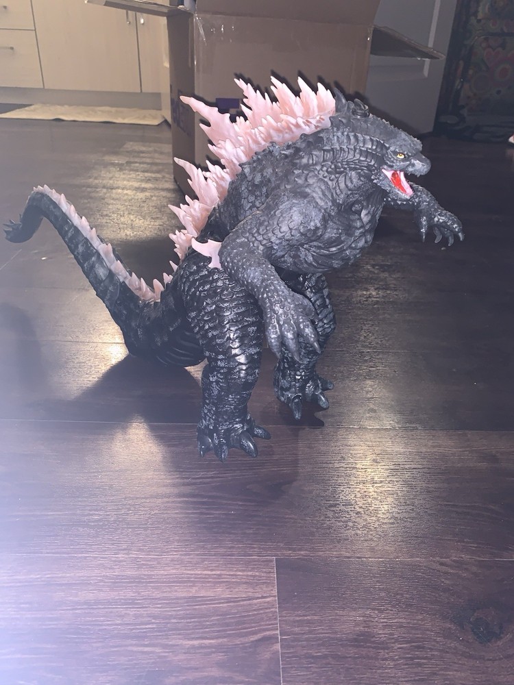 Jada Toys Godzilla X Kong: Heat-Ray Breath Remote Control Figure! This massive Godzilla figure lets you take command of the King of Monsters like never before. With easy-to-use remote control, you can move Godzilla forward, left, and right as his tail whips around to steer. As you prepare for battle, activate Godzilla’s famous heat-ray breath—the figure’s spine and jaws light up with a stunning blue effect, powered by real water vapor for an authentic atomic breath display. If you have any questions at all please do not hesitate to ask!