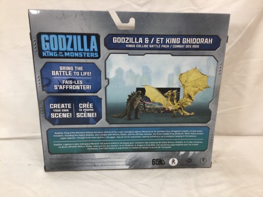 Godzilla King Of Monsters Jakks Pacific Godzilla & Ghidorah Battle 2 Pack Figure Set Boxed *NEW-SEALED* ***FREE SHIPPING*** This is from the 2019 Movie and made by Jakks Pacific Toys. Its a 7 piece set sealed New in box and highly detailed. The box is from a case and has NO age or wear on it. The pictures show all sides and auction is for 1 item. The best part is the ............... ***FREE SHIPPING*** *US ONLY*