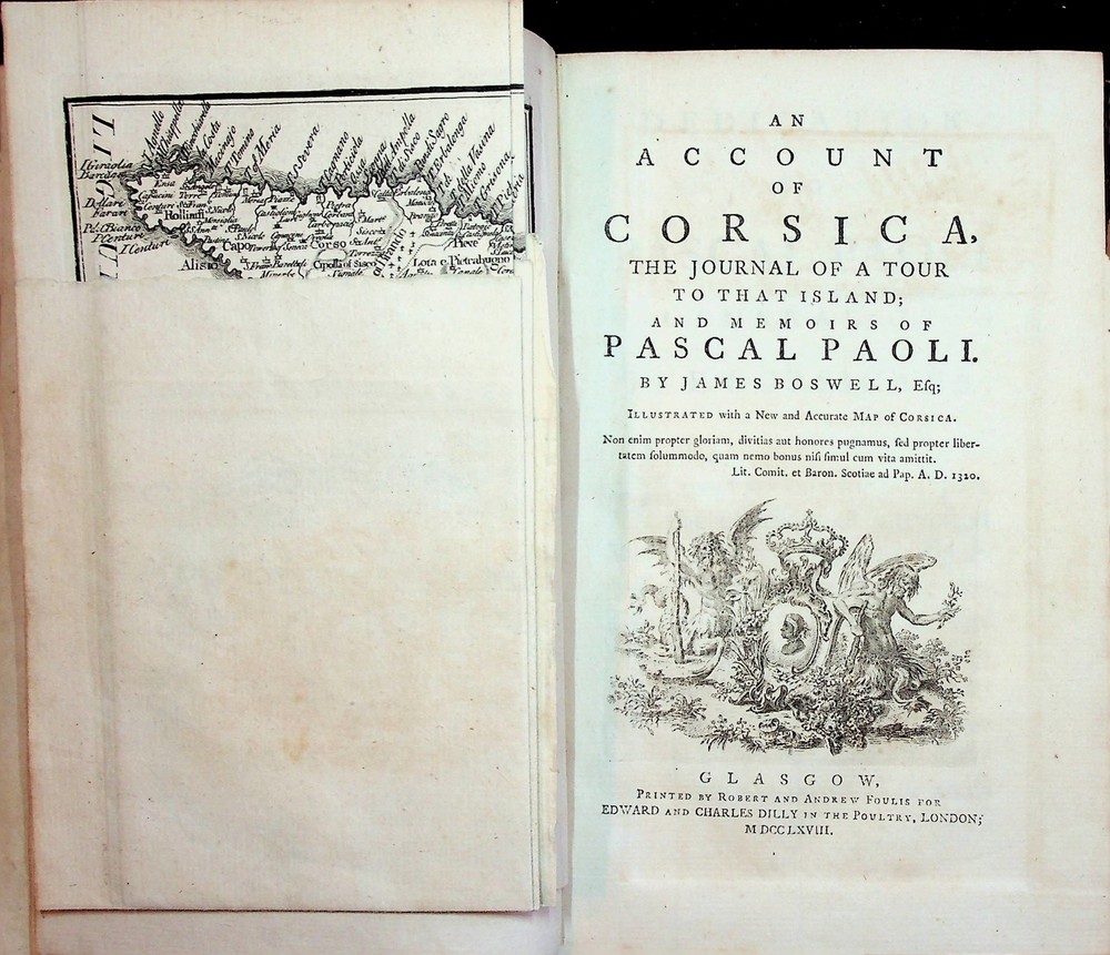 An Account of Corsica, the Journal of a Tour to That Island Author: James Boswell Title: An Account of Corsica, the Journal of a Tour to That Island Publication: Glasgow: Robert and Andrew Foulis for Edward and Charles Dilly, 1768 Edition: First Description: xxi, [3], 382 pp Folding copper-engraved map (8vo) 20x12 cm (8x4¾"), period full calf, raised bands, morocco lettering piece Some rubbing to spine and extremities, joints tender, minor wear to covers, small repair to rear cover; short stub tear to map, else very good or better, an attractive copy This was the first work to bring Boswell fame; it also brought the cause of Corsican independence, fought for under the handsome and impressive General Paoli, to international attention Boswell's urgent calls for support and the romanticized account of Paoli as lionized father figure nearly brought England into war with France over Corsica Eventually the struggle for independence was lost, and Paoli fled to England, where he enjoyed widespread adulation Even for an 18th century work, there are a significant number of variations for this first edition, which may occur in various combinations Following the general order per the Rothschild catalogue (442), specific points for this copy include: 1 Collation consists of blank leaf, half title, folding map, title page, preface, table of contents, pp 382, final blank leaf 2 P 51 â€"(ii) state, with :John Home" correctly placed 3 P 67/68 â€" l 11-12 (ii) state "noble fief of Is/tria" 4 P 357 â€" "Mariani" is spelled correctly 5 Folding map has the publisher's imprint and no scale of miles 6 Table of Contents - 141 for 241 uncorrected 7 P 70, l 17 - Ftruscans for Etruscans 8 P 93, l6 â€" "prince of" 9 P 137, l 11 â€" "feelirg" 10 P 172, l 9 - "tha the" 11 P 184, l 4 â€" with dots over the y in Montgomery" 12 P 296, l 18 â€" "of my own" 13 P 327, l 9-10 â€" "speculati/ions . Very Good. Seller ID: AA179 Baykorp Books Selling quality books and related items at reasonable prices. Terms All orders ship within two business days. Standard mail is USPS Media Mail. Expedited and international shipping are also available. We offer combined shipping on multiple orders. All items are guaranteed to be as described or they may be returned within 30 days of receipt for a full refund. This listing was created by Bibliopolis.
