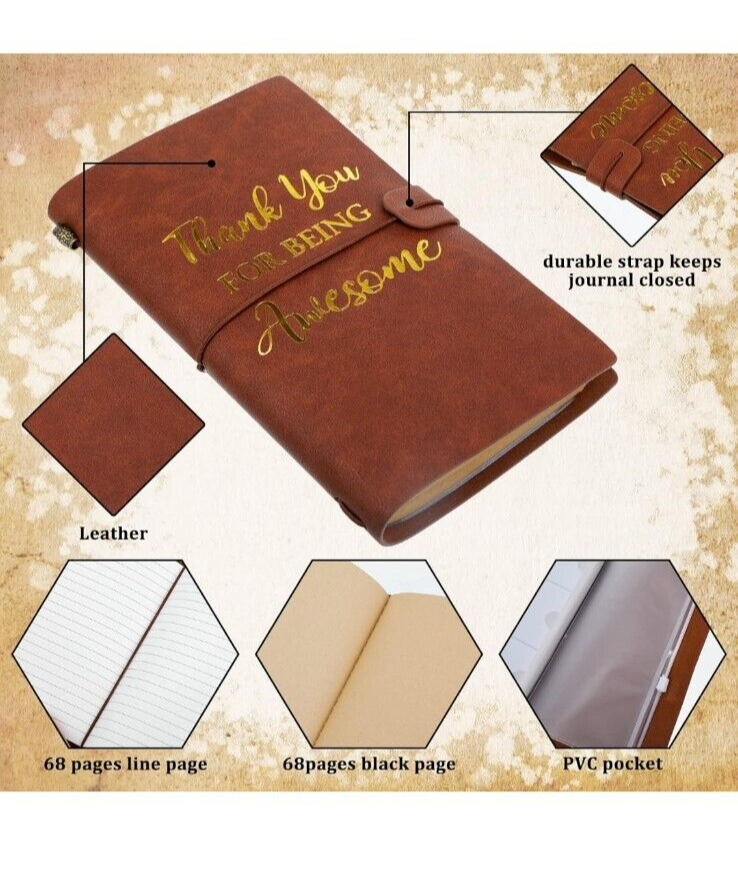 Love this refillable leather journal—perfect size, feels luxurious, and comes in stunning colors! The soft lined pages make writing a joy, and the bulk set is ideal for gifting or personal use. Great quality with sturdy binding, and the compact 4.7x7.9 in. size slips easily into bags. A must-have for note-takers or anyone who appreciates elegant stationery!