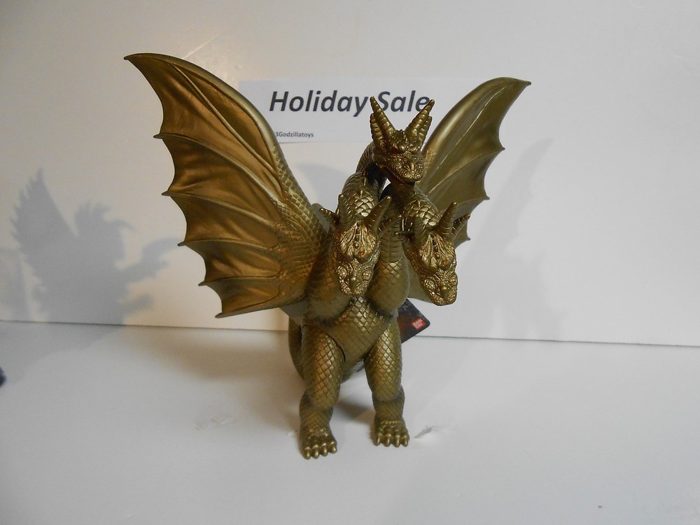 (Priority Mail FREE) You are bidding a ULTRA RARE RETIRED 2003, Brand New Japan Bandai cooper color (not Gold color) king Ghidorah 7 inch tall (wing open 11") vinyl action figure with factory tag attached,very detail monster, shipping USPS First Class mail with tracking in US.Please check us the other godzilla figures for"Holiday Sale " and combine shipment to save your shipping cost. Powered by eBay Turbo Lister The free listing tool. List your items fast and easy and manage your active items.