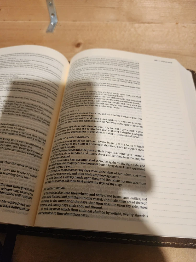 The Bible was in good condition. It appeared the Bible was a little musty being stored away perhaps with some moisture. A couple of pages in Ecclesiastes were damaged at bottom corners likely due to printing problems. One of the gold index tabs for Sol., Isa. and Jer. was misplaced on a Bible page. But overall the Bible was described as seller said. I think the price was $ 15.00 over. But I chose to buy it. Seller was honest and nice. I purchased nicer copy for $ 15.00 less from another buyer.