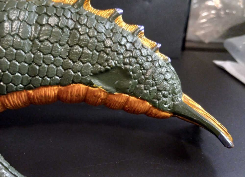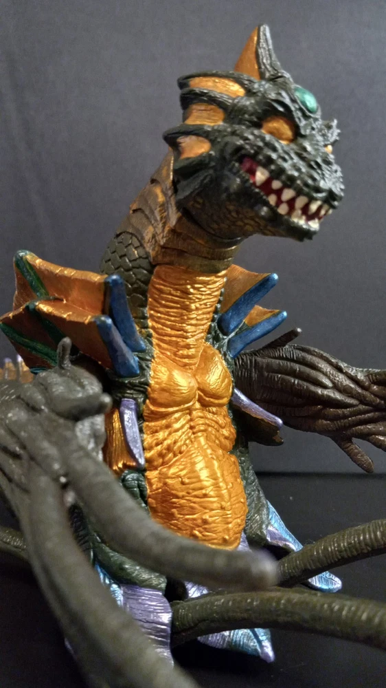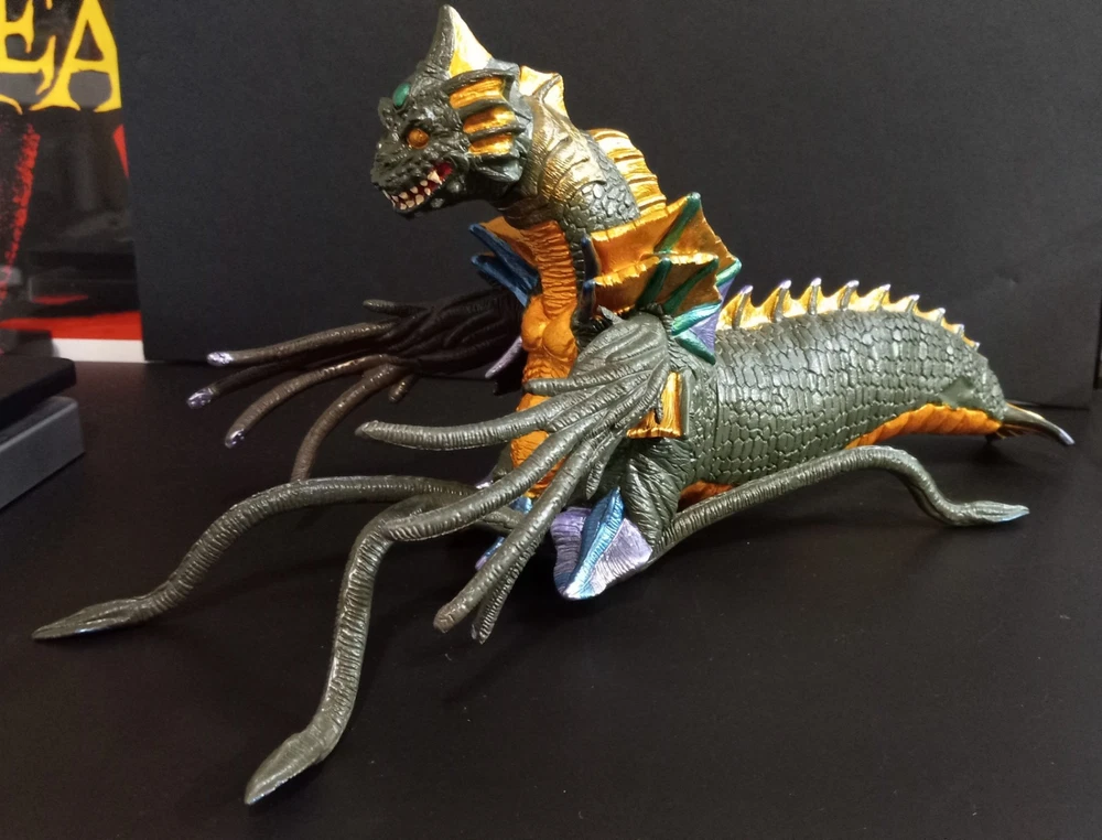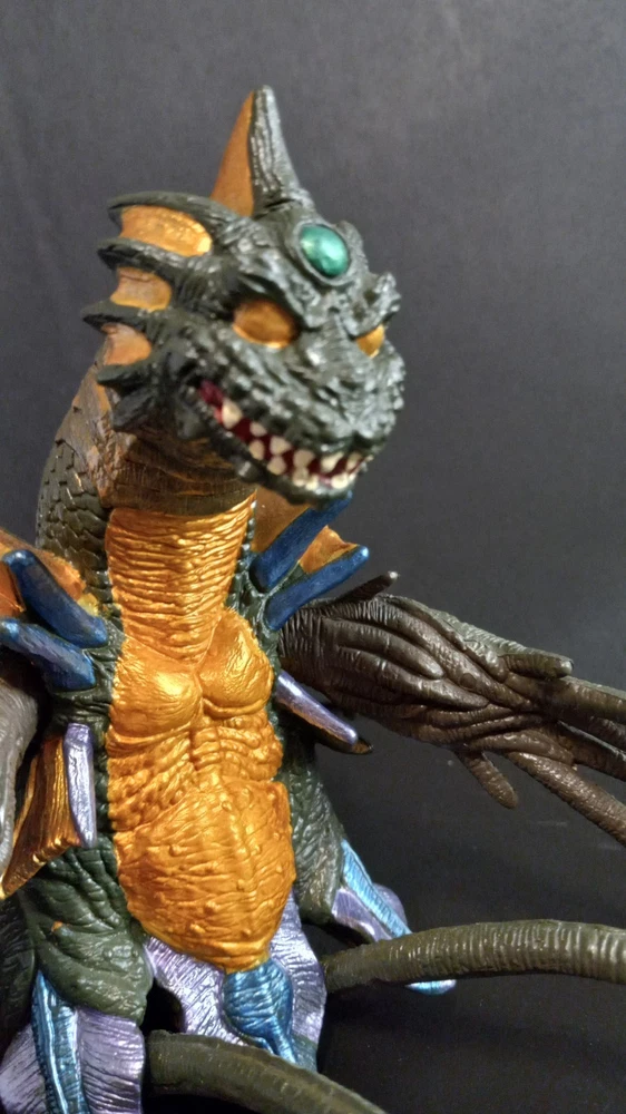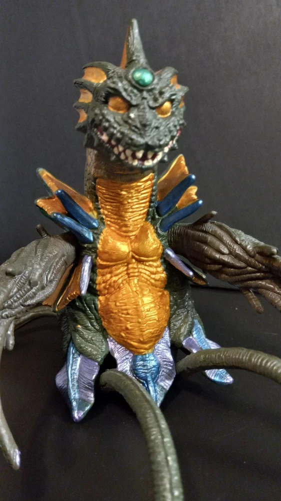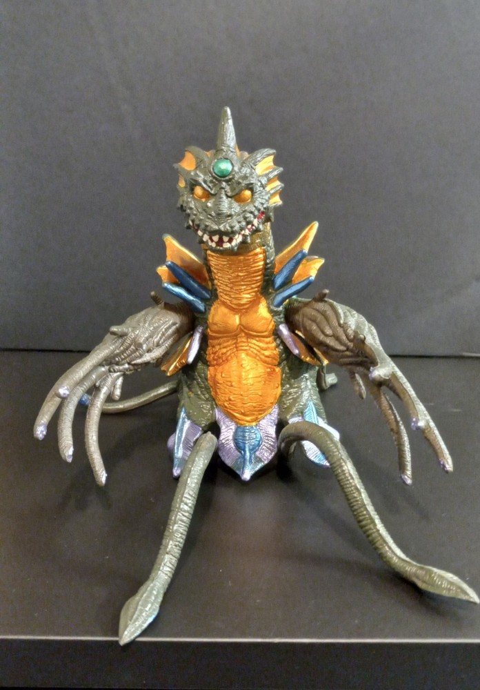 Bandai figure is about 14 inches long and 6 inches tall. Figure appears to have been custom painted and is missing one fin near the tail. Not a perfect specimen but maybe a less expensive way to add this rare kaiju to your collection! I generally don't do refunds but if there is a problem with your order please don't hesitate to contact me, i have no problem making it right. Questions are welcome, please don't hesitate to ask. WE DO NOT SHIP INTERNATIONALLY. NOTE: I ship most packages within 24 to 48 hours but could take up to 3 days in rare circumstances.