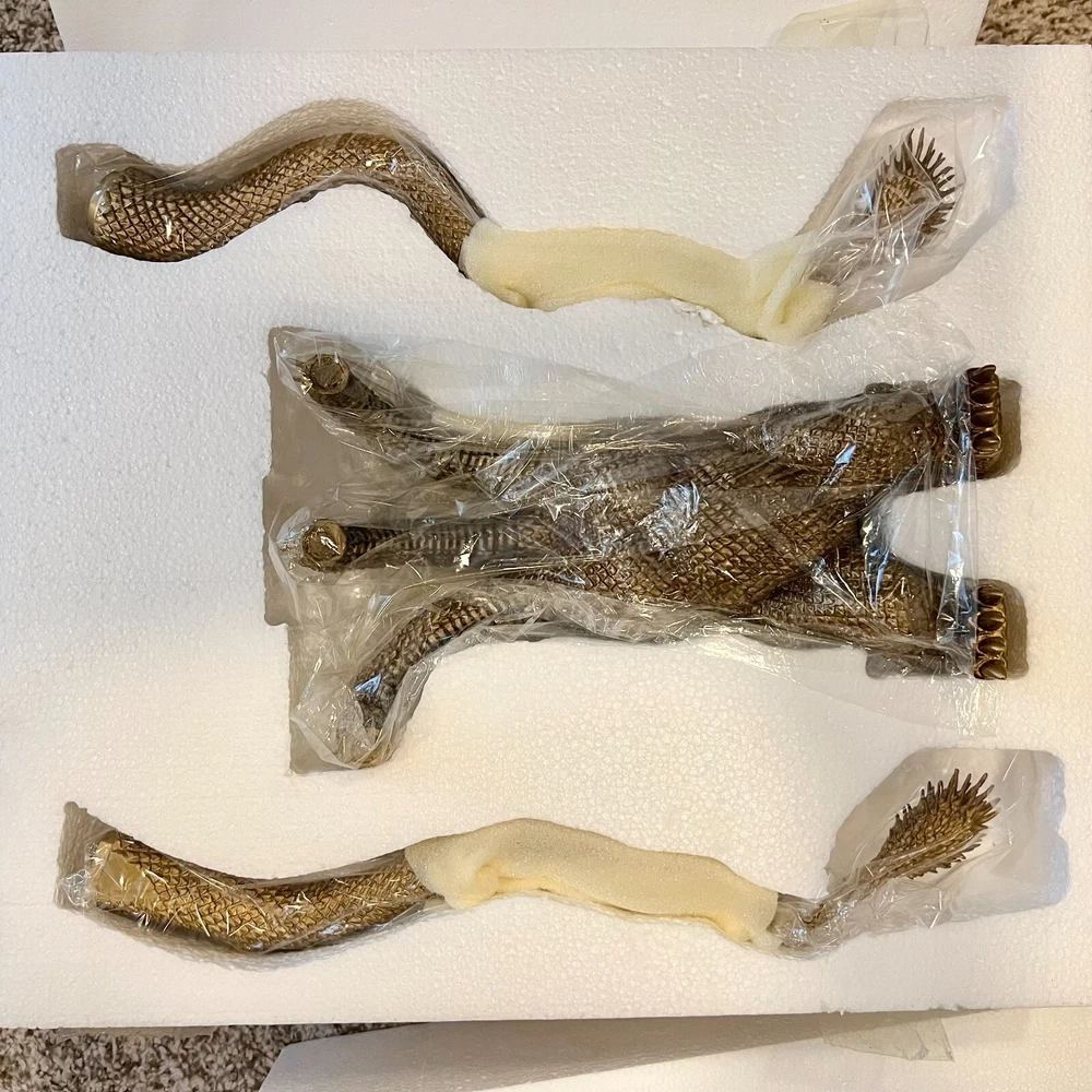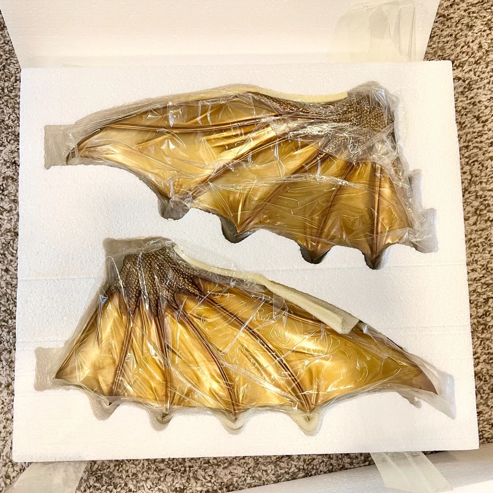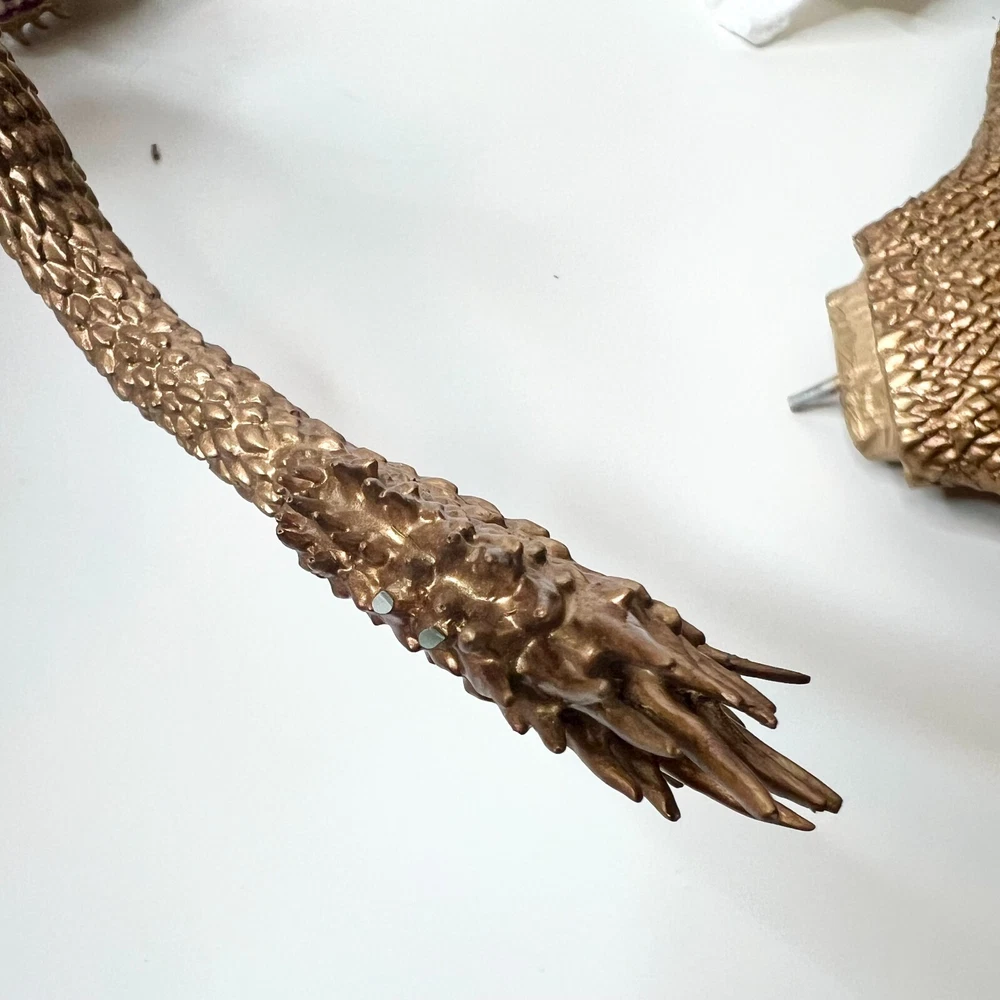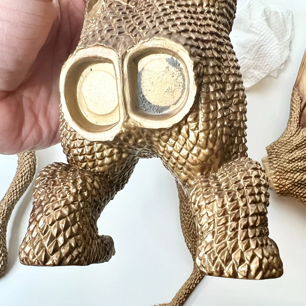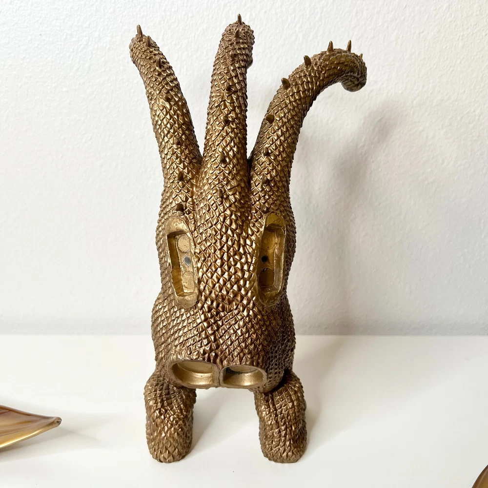 Hello collectors, Here's a King Ghidora Polystone Figure from Godzilla 1991 series. Comes with box and figure. Overall in very good condition. It may possibly be new, but I have marked as used as I'm unable to confirm new condition. While taking pictures I accidentally broke off two spikes from the tail as shown in pictures. Item is fragile so please handle carefully. Figure is very large with wings and tails. Easily over 12'' tall and long. Figure is assembled and held together by magnetic connection. Grey dust near the tail connection is magnetic dust. Please send me a message with any questions.