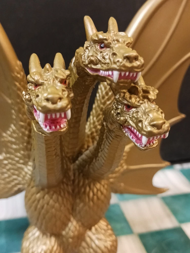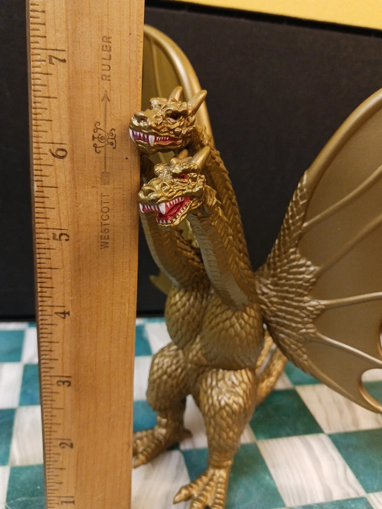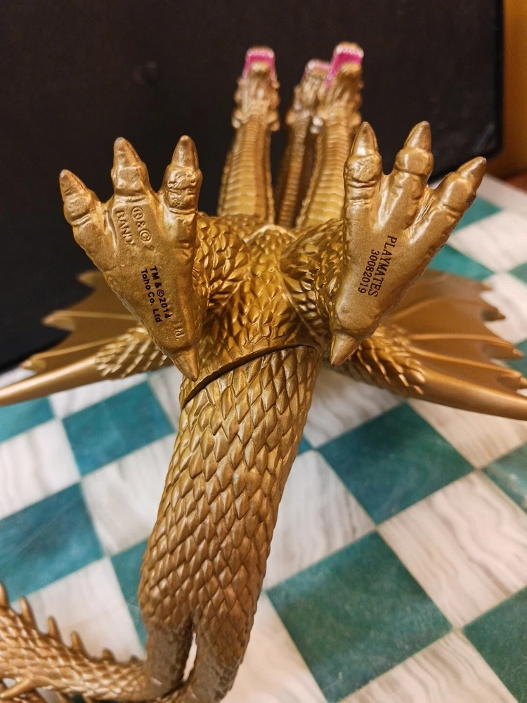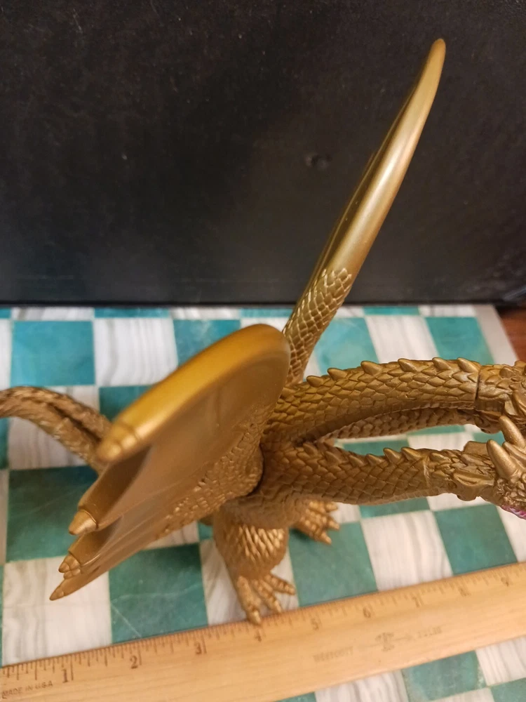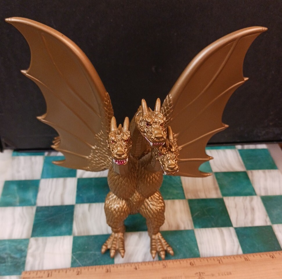 2014 King Ghidorah action figure is approximately 7" inches tall, in good used condition, with minor visible wear to painted plastic surfaces (photos). Three-headed monster Godzilla collectible, by Playmates / Bandai / Toho, made in China. Free shipping.