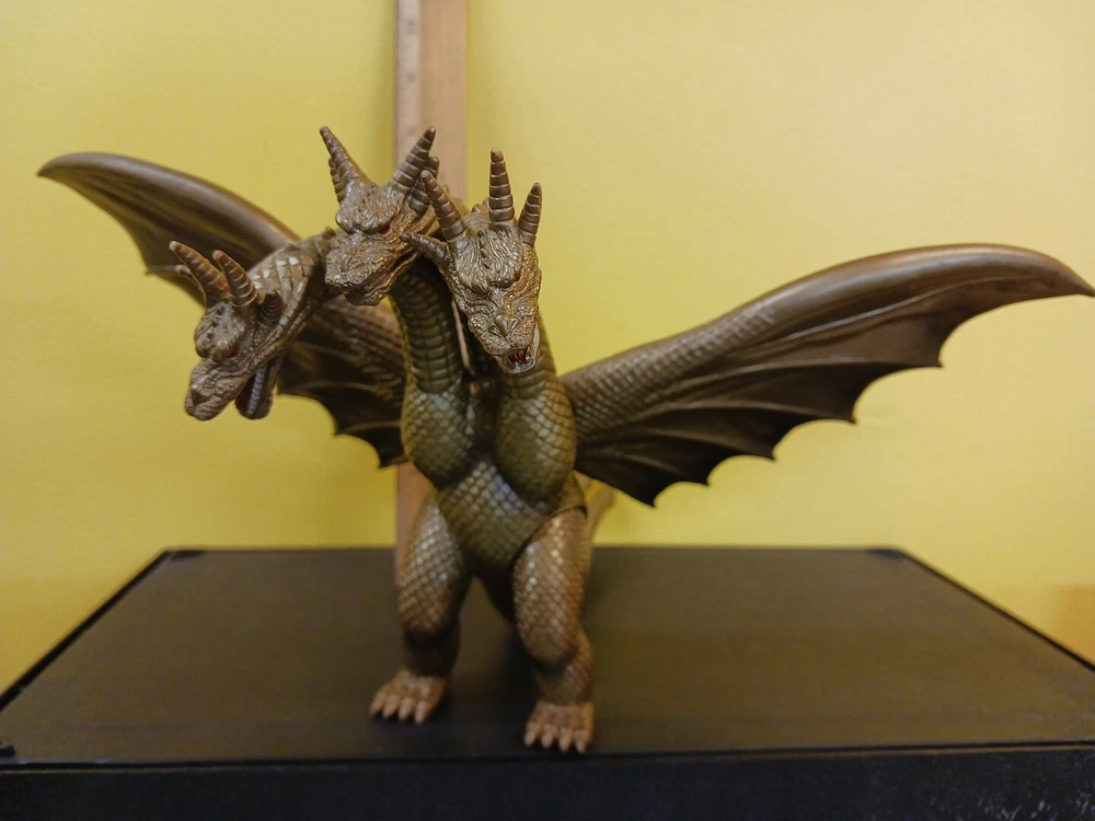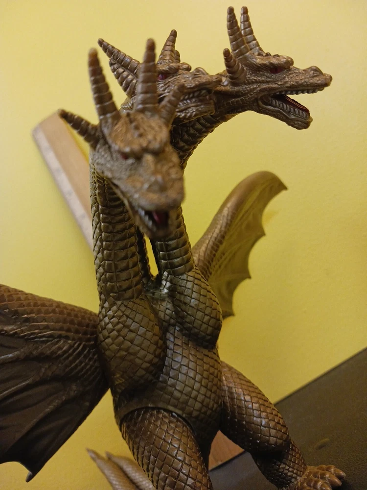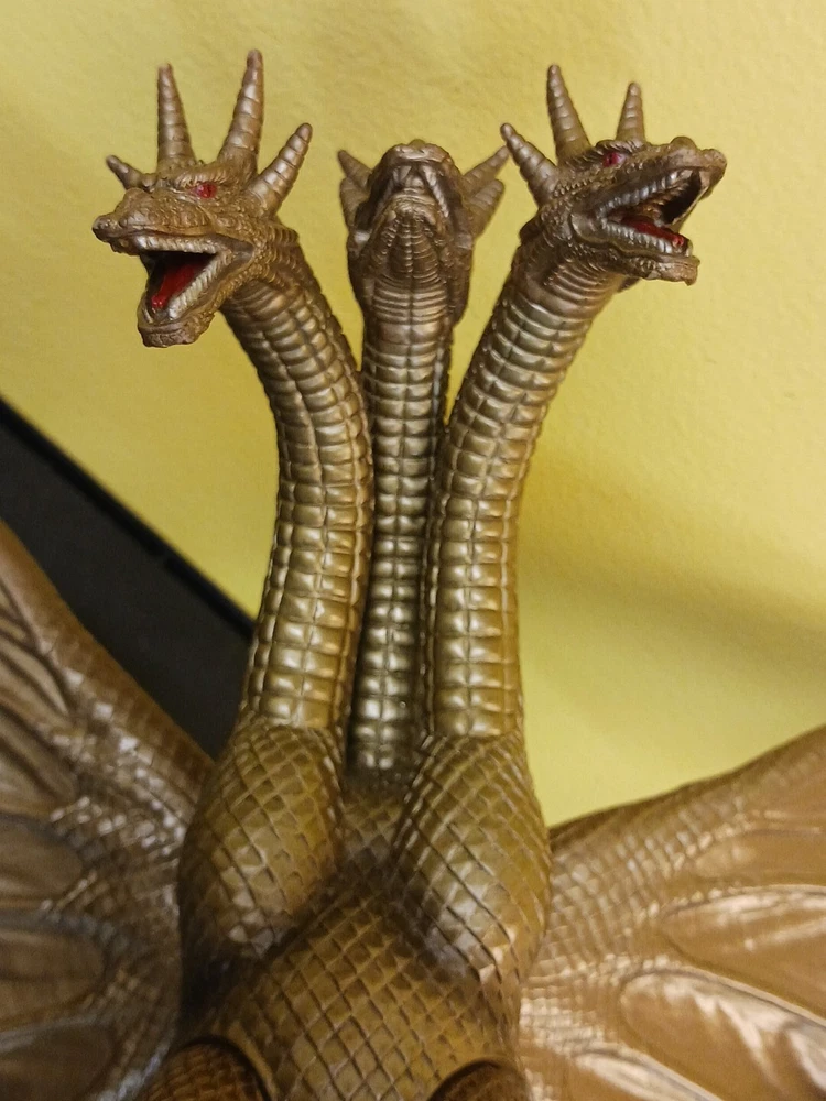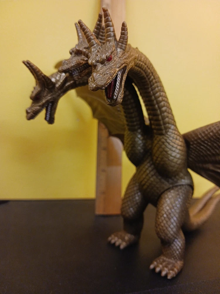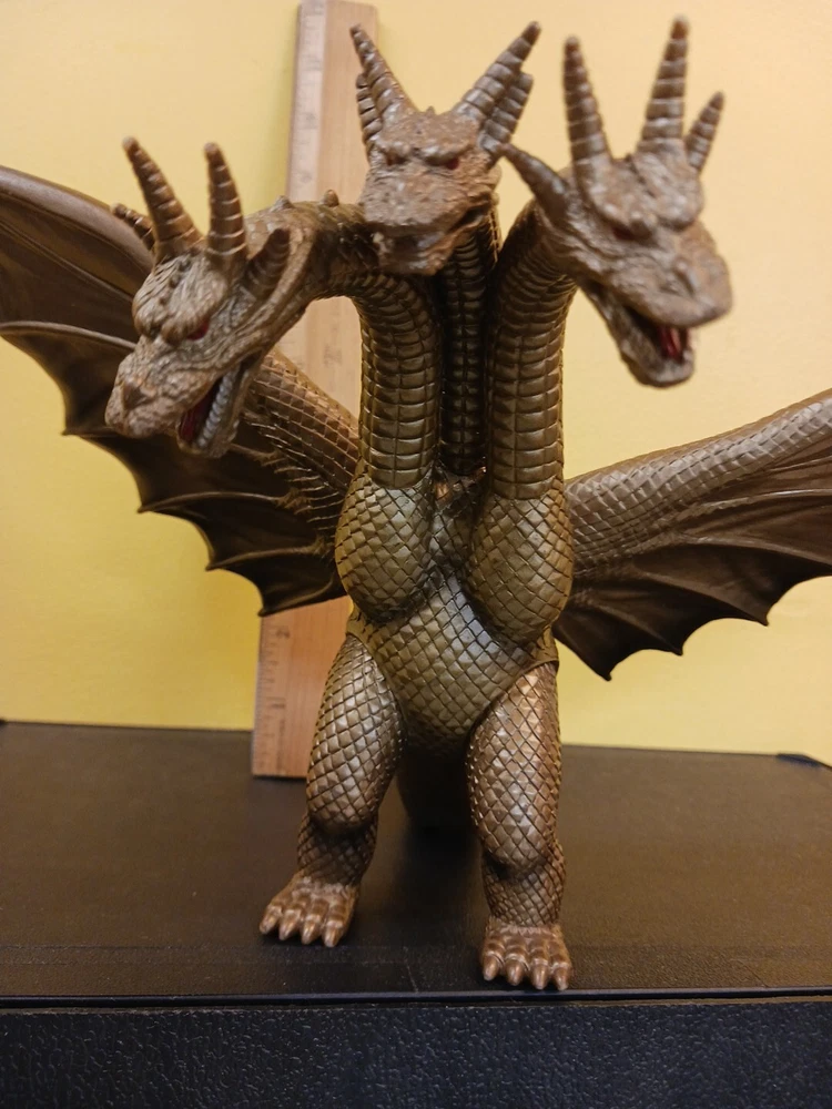 1998 Bandai King Ghidorah action figure is approximately 7" inches tall, wing span of roughly 11.5" inches, in good used condition, with minor wear as shown (photos). Godzilla monster kaiju vinyl acti...