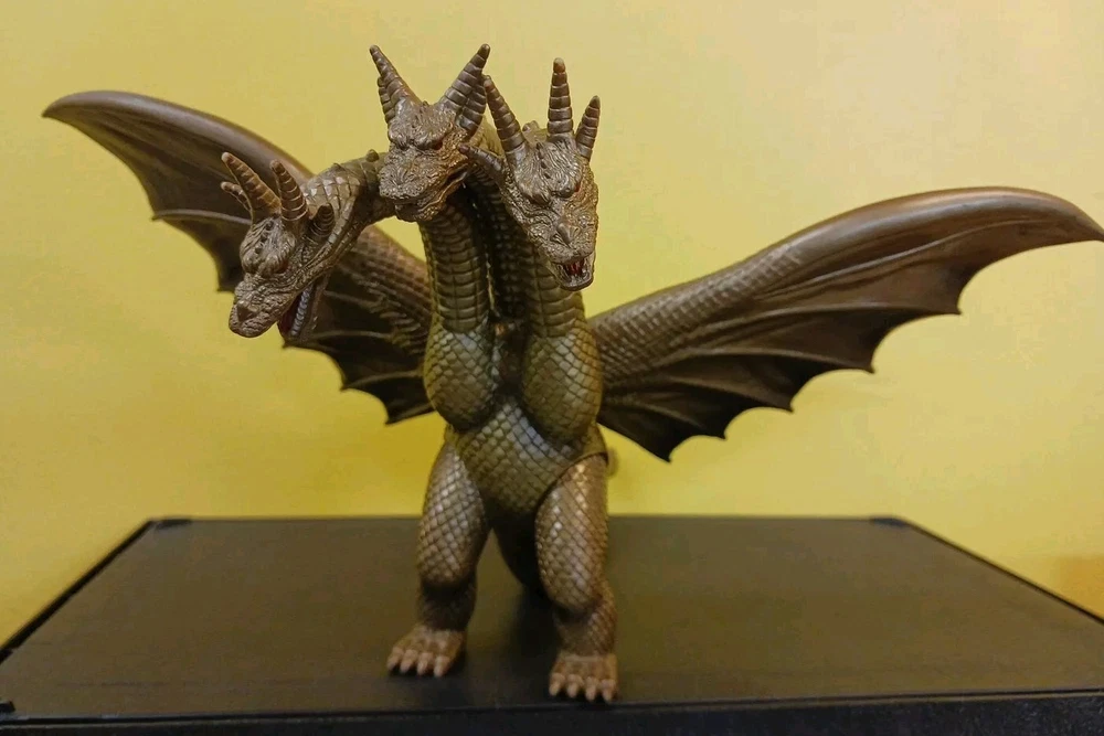1998 Bandai King Ghidorah action figure is approximately 7" inches tall, wing span of roughly 11.5" inches, in good used condition, with minor wear as shown (photos). Godzilla monster kaiju vinyl action figure collectible. Free shipping.