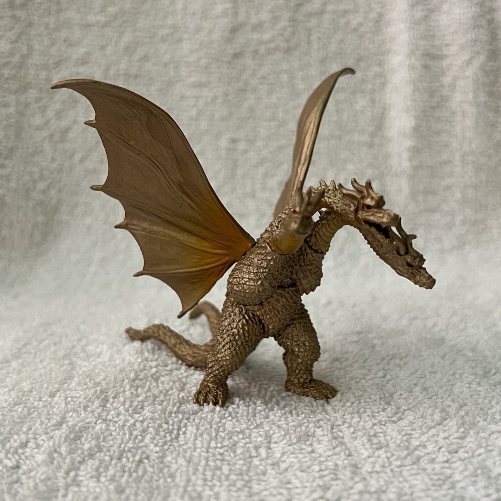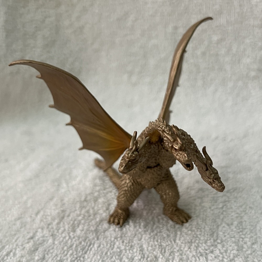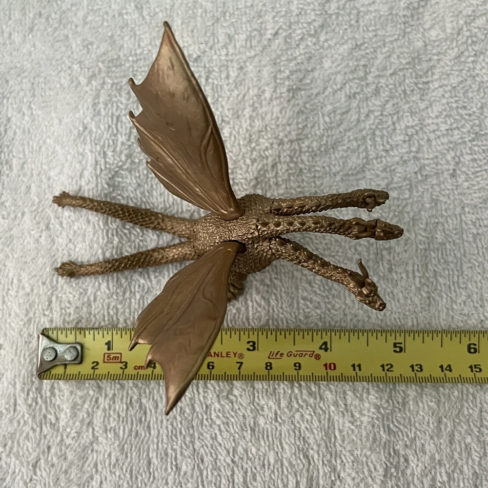 For your consideration, we have this great item that you can use or gift to that special someone. Brand: King Ghidorah (Bandai Japan) Features: Awesome detail. Great color. Condition: Like new. New old stock. Size: Approximately 5 inches long and just under 4 inches tall from feet to tip of wings. Color/Pattern: Gold. Nice details. Material: PVC Do not hesitate to make this cool item part or your collection! Please be sure to check out our other listings! We have many cool offerings so you are bound to find other items to your liking. Please Note: Colors on our pictures may be ever so slightly different from the actual item. The camera we use, the lighting, and the device that you are viewing this listing from may interpret colors a little different. We strive to give accurate descriptions and only crop our photos to fit. Thanks again for looking and Happy Shopping! We ship fast. Returns are accepted within 30 days of purchase. Items must be sent back in the same condition it was sent for a full refund.