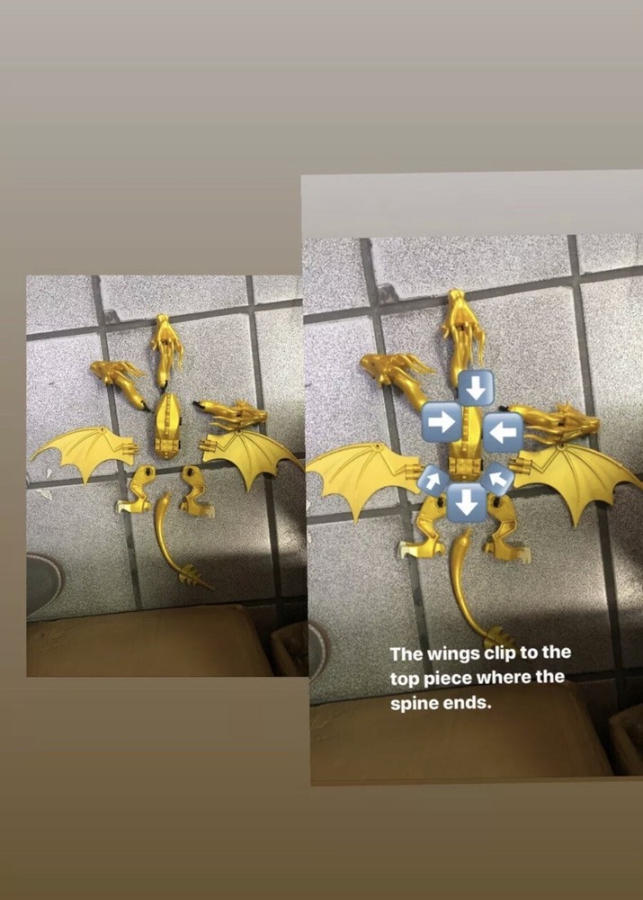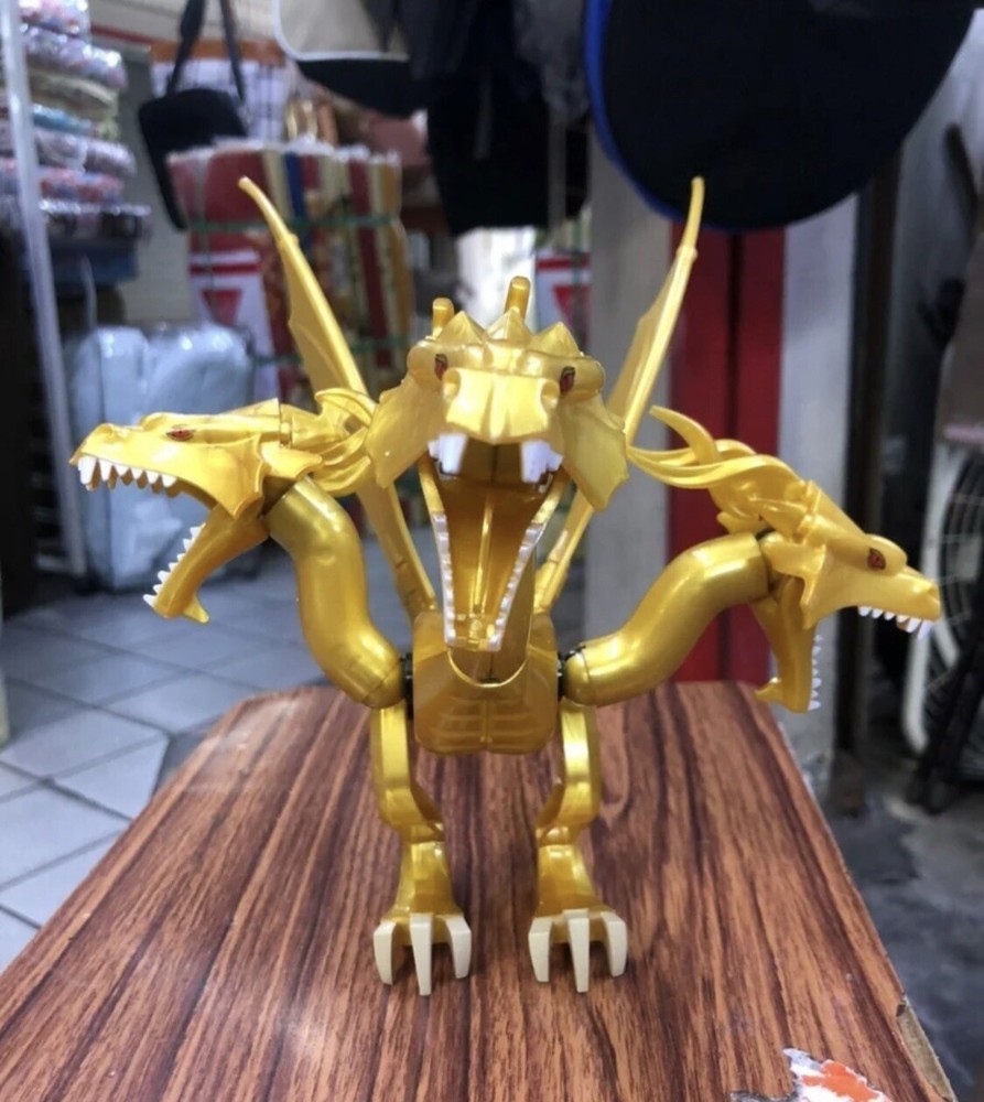 King Ghidorah Large Lego Figure. Item is loose and does not come with box. It’s about 7 inches tall. It is already assembled. All you have to do is put the pieces into the body like shown on the pictures. All sales are final. ****all you have to do is attach the pieces to the body. Very easy since we already assembled already****