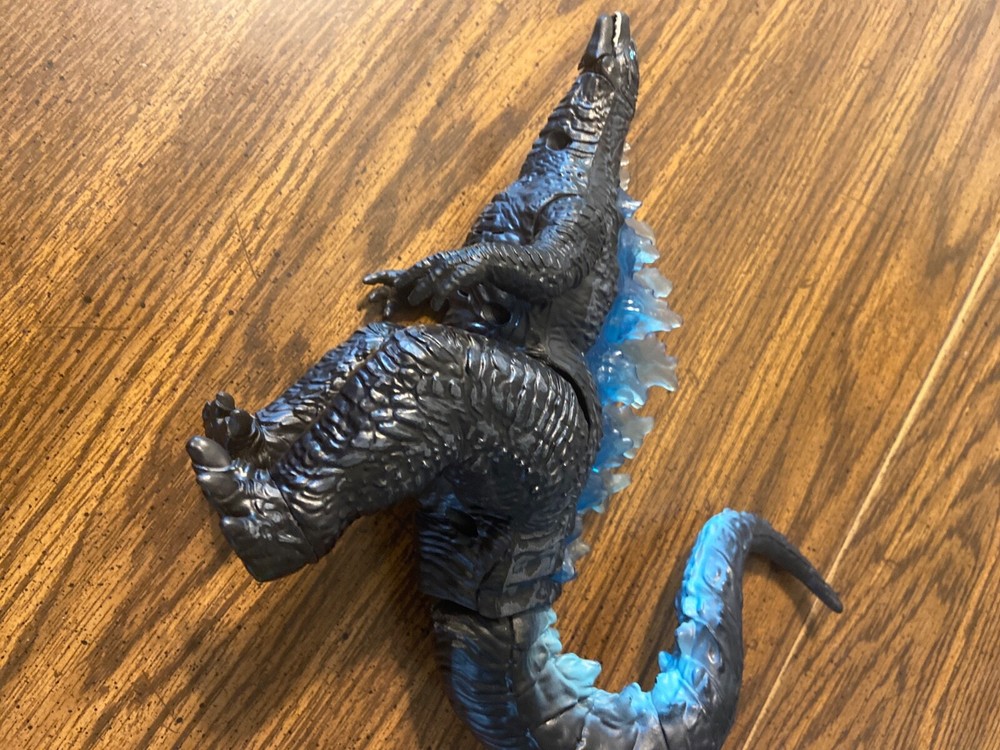 King Kong versus Godzilla action figures. Godzilla lights up and makes noises. Arms, legs, and tail moveable. King Kong has removable attack damage, weapon, and moveable arms and legs.