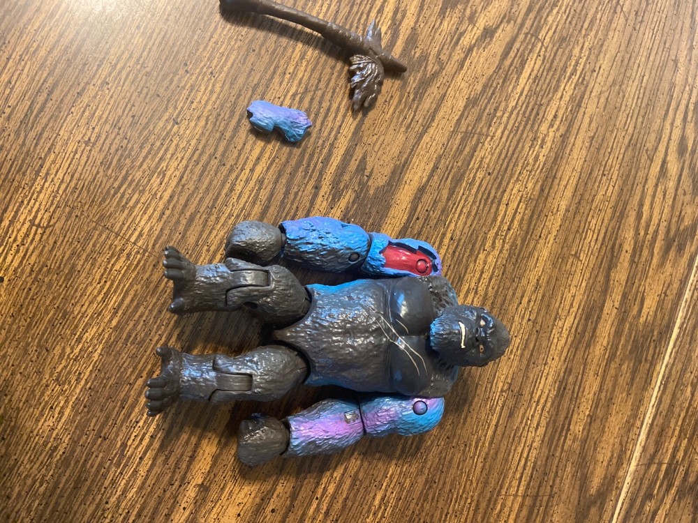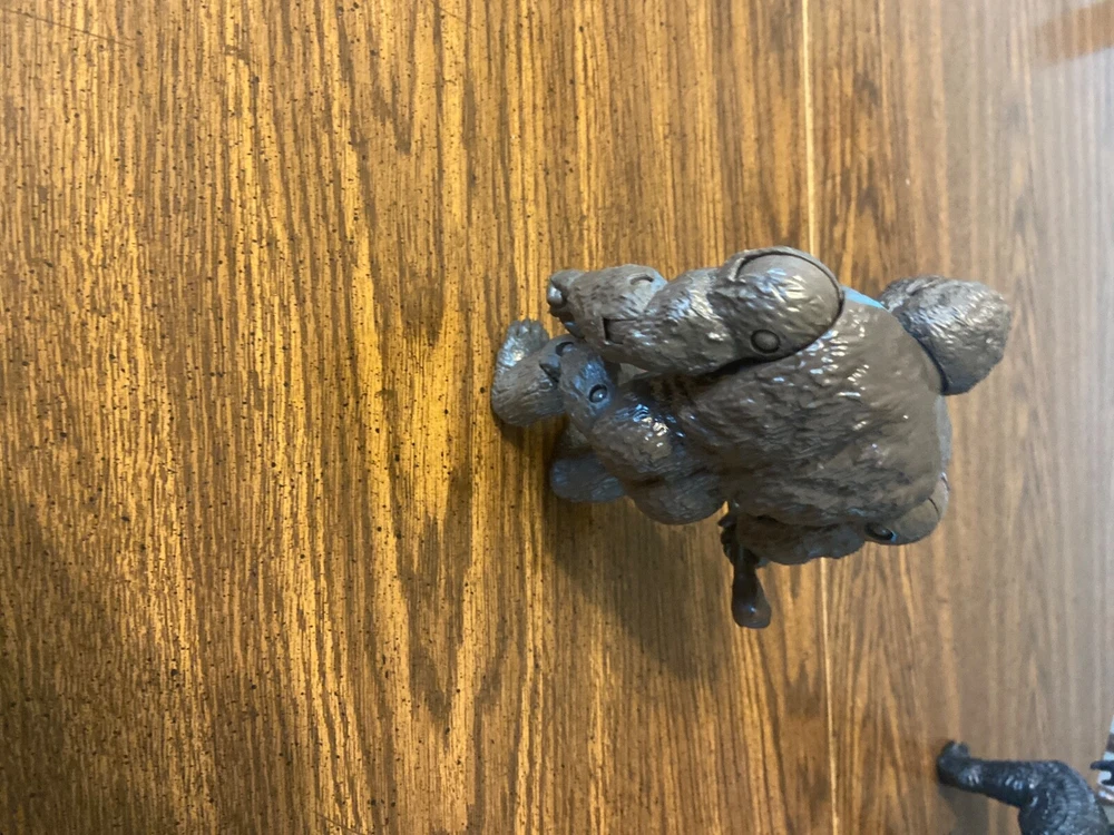 King Kong versus Godzilla action figures. Godzilla lights up and makes noises. Arms, legs, and tail moveable. King Kong has removable attack damage, weapon, and moveable arms and legs....