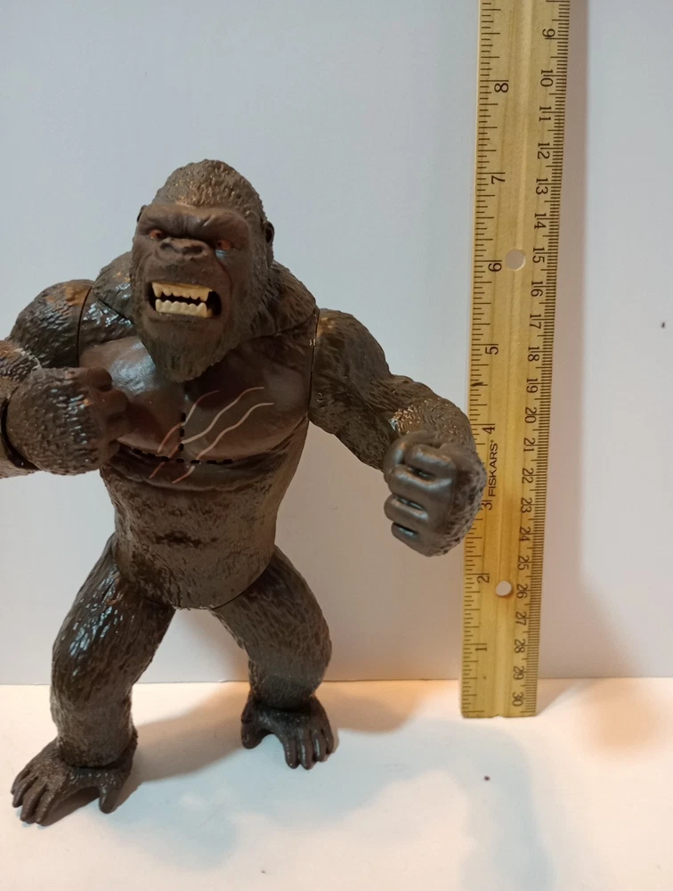 This Playmates Toys action figure features King Kong from the movie "Godzilla vs. Kong". The 7" figure is made of plastic and comes with batteries included. It also has sound features, with King Kong's roar working, adding to the excitement. The figure is an original licensed reproduction and is part of the "King Kong" franchise. The figure is in great condition and is perfect for fans of the "Godzilla vs. Kong" TV show and movie. They would make a great addition to any action figure collection. The figure is not personalized and is not a custom bundle. It was manufactured in 2021 in China and is in the theme of TV, movie, and video games.