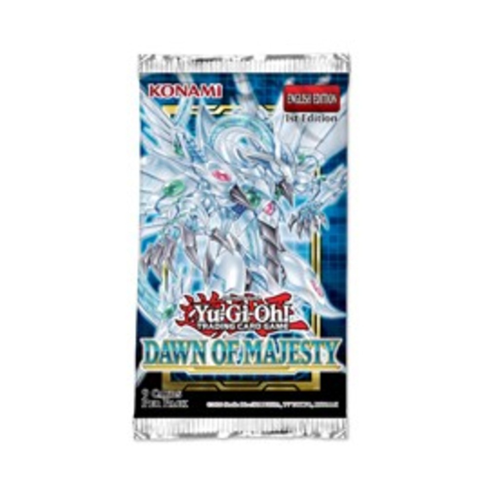 This Dawn of Majesty booster pack is a fantastic addition to any Yu-Gi-Oh! collection! The cards are fresh, high-quality, and packed with exciting new strategies. Pulling rare holographics feels amazing, and the artwork is stunning. Whether you're a competitive player or just love collecting, this pack delivers great value. The thrill of opening it never gets old—highly recommended for fans!
