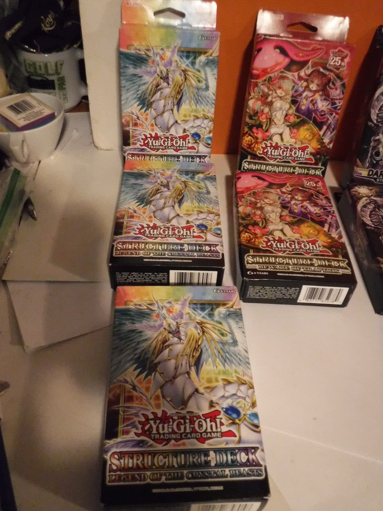 what you see is what you get. 7 total, 3-Legend of the Crystal Beats, 2-Beware of Traptrix and 2-Structure Deck.. total of 7 .. unopened. came from an estate sale and being sold as is due to age.....