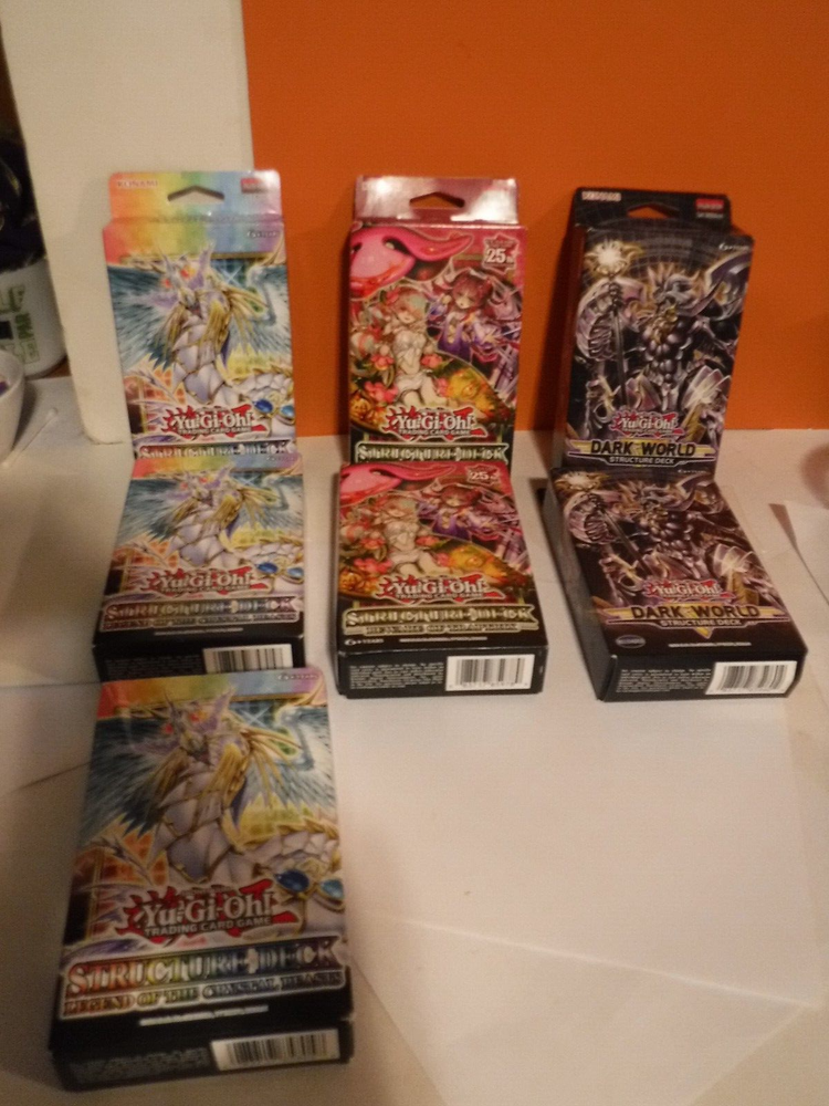 what you see is what you get. 7 total, 3-Legend of the Crystal Beats, 2-Beware of Traptrix and 2-Structure Deck.. total of 7 .. unopened. came from an estate sale and being sold as is due to age..
