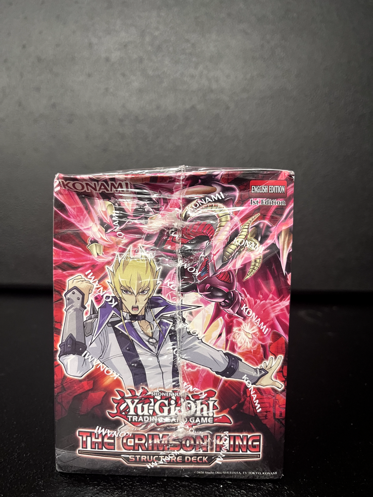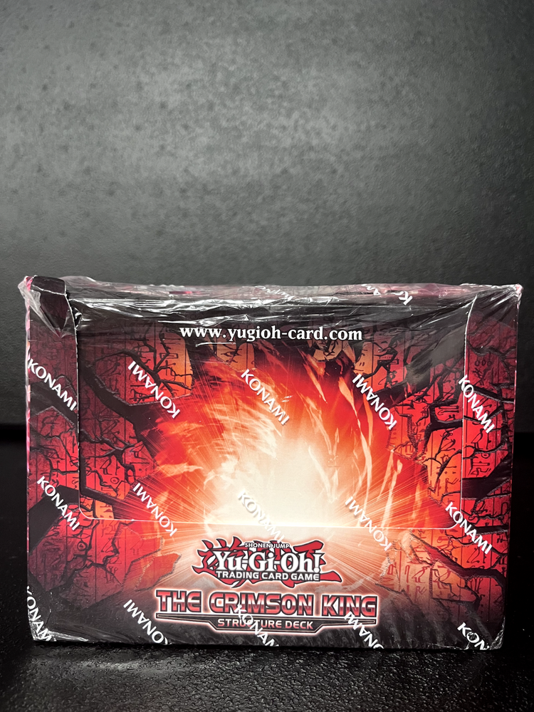 Description of Box: Heavy is the head that wears the crown, unless you’re Jack Atlas, the Master of Faster! Structure Deck: The Crimson King puts you in the driver’s seat of the Phoenix Whirlwind and gives you command of the many faces of Red Dragon Archfiend! Start off by Synchro Summoning one of the Level 8 “Red Dragon Archfiend” monsters, then Special Summon more “Resonator” monsters until you have the right combination to unleash even higher-Level Synchro Monsters like the imperious Red Nova Dragon! This Structure Deck includes a massive Extra Deck to maximize your strategic flexibility. It also includes a brand-new Level 8 Synchro Monster that counts as Red Dragon Archfiend on the field or in the Graveyard and can turbocharge your own strategy while sending your opponent back to the Dueling stone age! Use this new monster to Summon one of the higher-Level Red Dragon Archfiend Synchro Monsters and you can Special Summon the original Red Dragon Archfiend from your Extra Deck AND eliminate all your opponent’s Attack Position monsters without needing to battle! Configuration: 1 Display, 8 Units Per Display