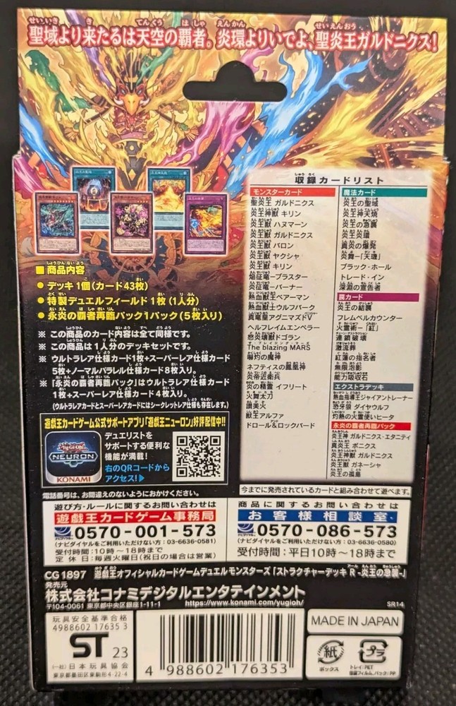 Structure deck from Japan includes 43 cards and "one special duel field" and more Dive into the strategic world of Yu-Gi-Oh! with Konami's The Fire Kings Raid Structure Deck. This sealed deck is a must-have for enthusiasts and collectors alike, offering a well-balanced set of 43 cards that promise to enhance your gaming experience. Straight from Japan, the deck features exclusive Japanese language cards, adding a layer of authenticity and collectibility. Designed for players aged 9 and up, each deck comes with everything you need to start playing or to expand your collection. The 2024 release ensures you're getting the latest from the dynamic universe of Yu-Gi-Oh! TCG. Whether you're a seasoned duelist or just starting out, The Fire Kings Raid deck is an excellent addition to any player's arsenal.