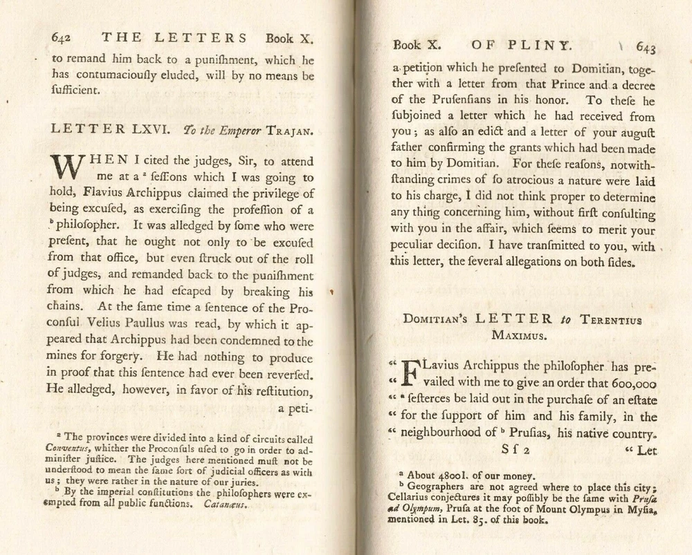 LATE 18TH CENTURY (1777) ANTIQUE VOL. 'THE LETTERS OF PLINY THE CONSUL,' (w/occasional remarks) VOLUME II, By WILLIAM MELMOTH LONDON, UK, Printed for J. Dondsley, in Pall-Mall MDCCLXXVII (1777) 18th century British correspondence DIMENSIONS: 8 ¼" Height x 5" Width x 1" Depth, 692 pages DESCRIPTION: There's minimal foxing on some of the interior cotton pulp pages. The previous owner had incorrectly written down the conversion of the year in ink (1787, instead of 1777) under the roman numerals on the title page. CONDITION: Fair to Good overall antique condition.