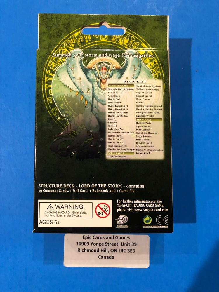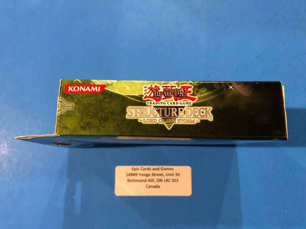 You are bidding on : 1 x Yu-Gi-Oh LORD OF THE STORM Structure Deck (1st Edition) Factory Sealed Condition: Brand new and unopened . Please see pictures for condition. What you see is what you get. Payment is due within 5 days of the end of this auction. (If we don't have an item in stock due to inventory problems etc, we will refund your payment immediately, please understand these things happen and we try our best to make sure they don’t but mistakes can happen.) Shipping : Handling time: 1 - 3 Business days *“Business days” are normal weekdays. Saturdays, Sundays, and major holidays do not count as business days. Expedited within Canada ( S hipping is calculated based on your location. If you allow us to combine an invoice for you, additional boxes please add $2.99 shipping per box. ) $12.99 for USPS Tracked Package to the USA Epic Cards and Games Any questions feel free to email us and allow 1 day for a response. Thanks for looking! Sales Tax (Canada Only) : Purchases made by Canadian residents are subject to applicable GST/HST, depending on your province/territory. (If you do not agree to this, please do not bid. We have a registered business in Canada and are required by law to charge taxes to anything shipped within the country.) Thank you for shopping with Epic Cards and Games