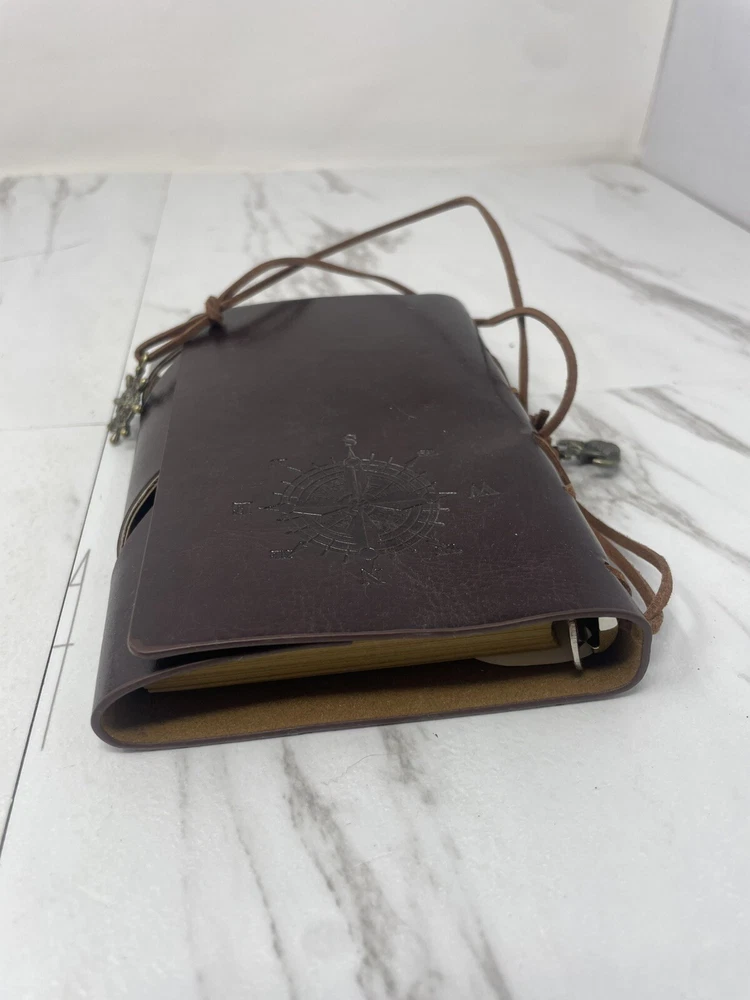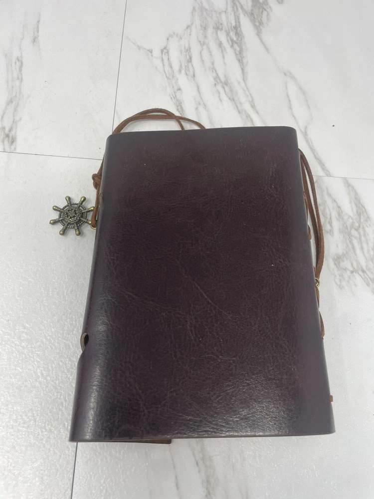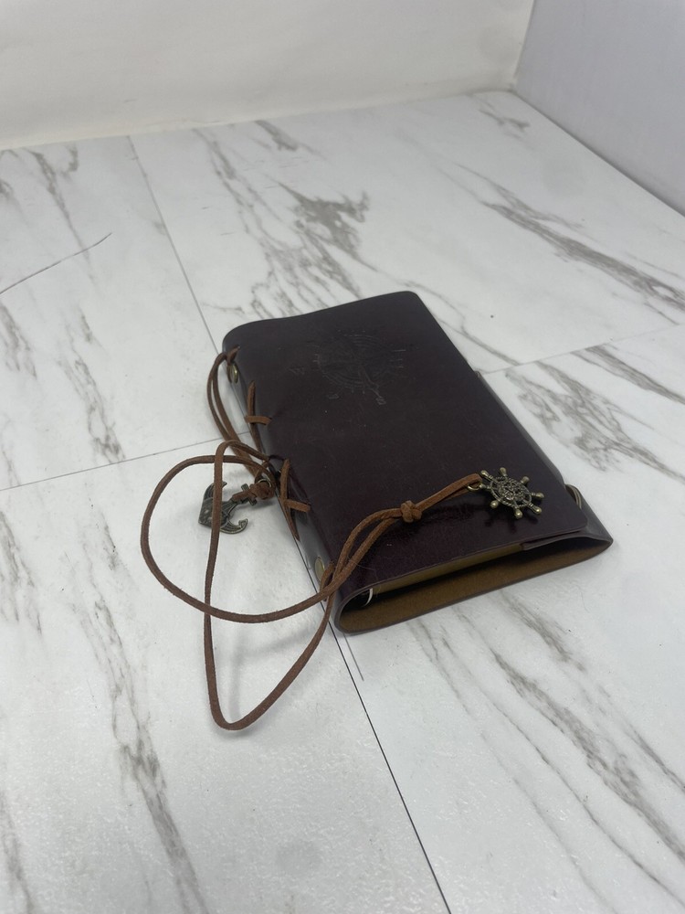 This is a luxury leather bound artisan journal with yellow pages, designed for travel and inspired by a captain theme.