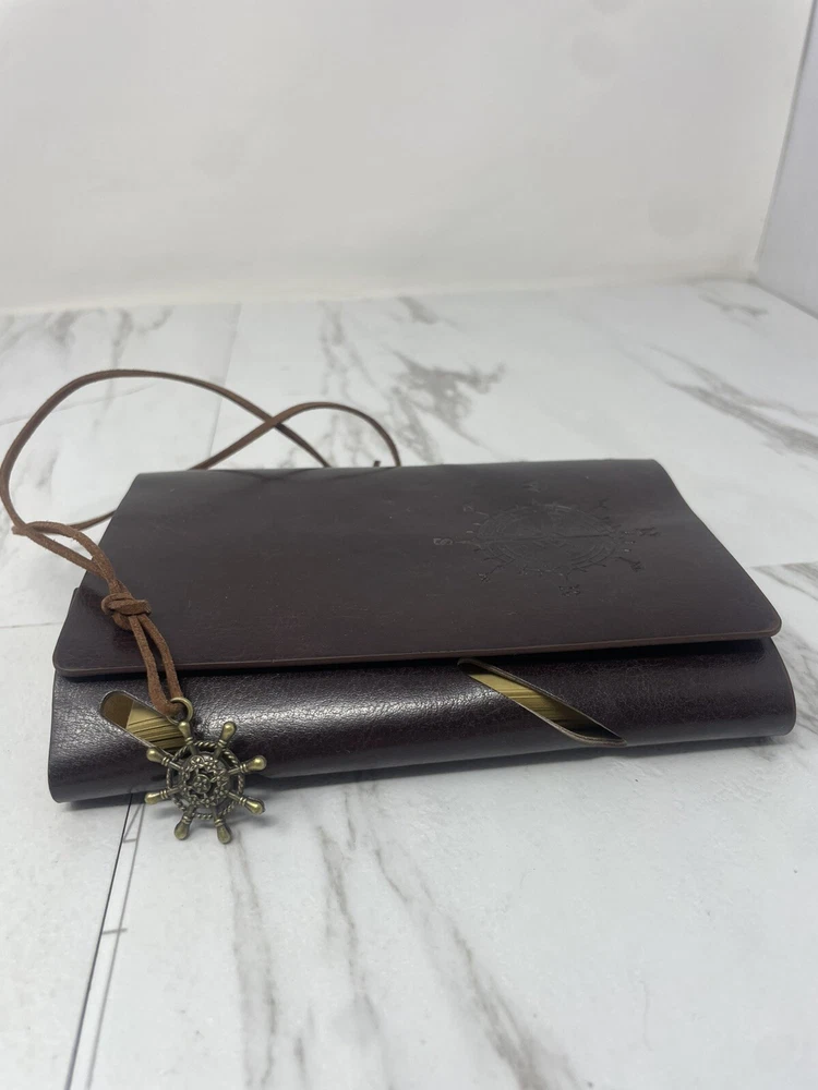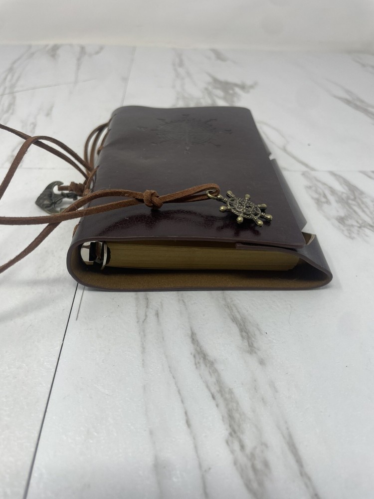 This is a luxury leather bound artisan journal with yellow pages, designed for travel and inspired by a captain theme....