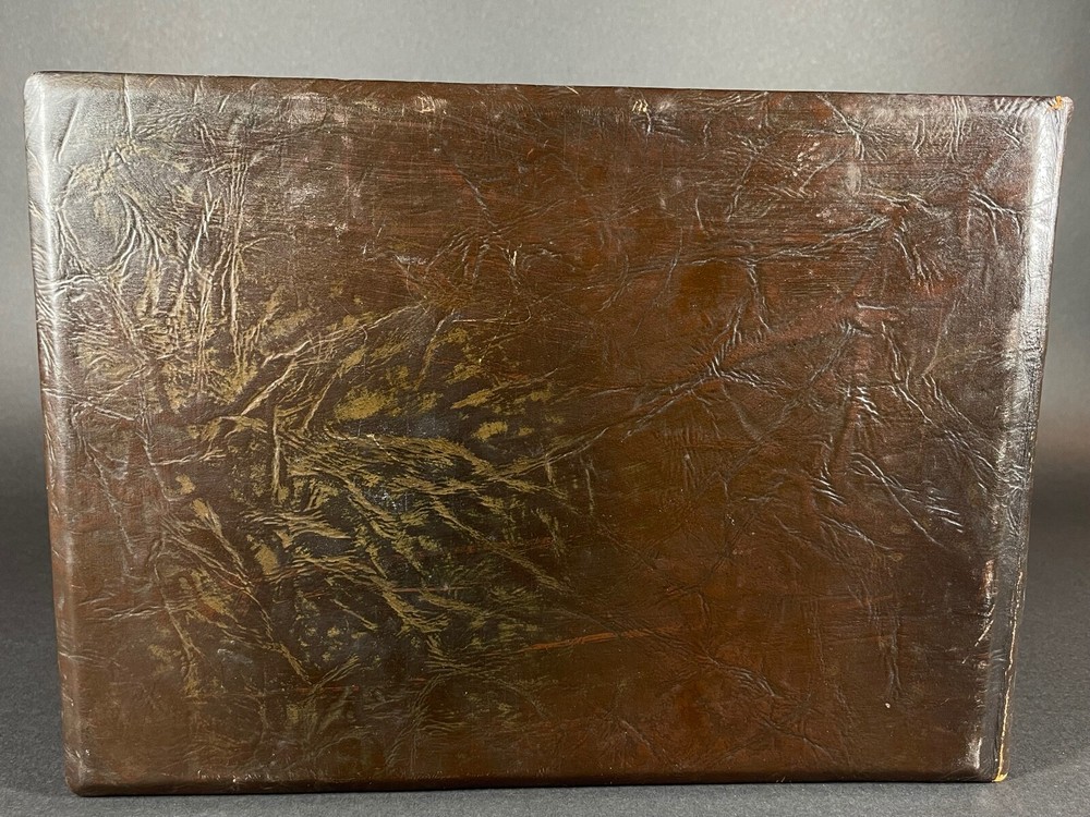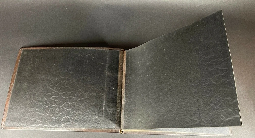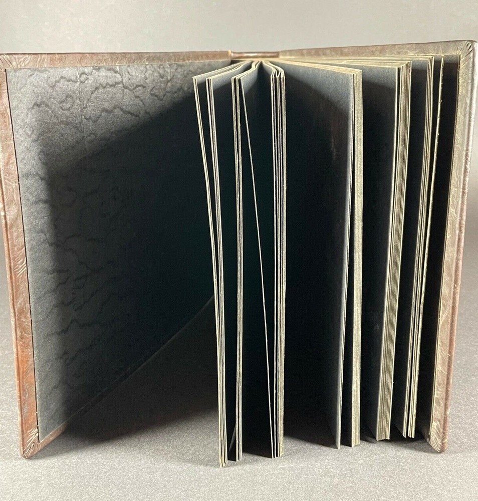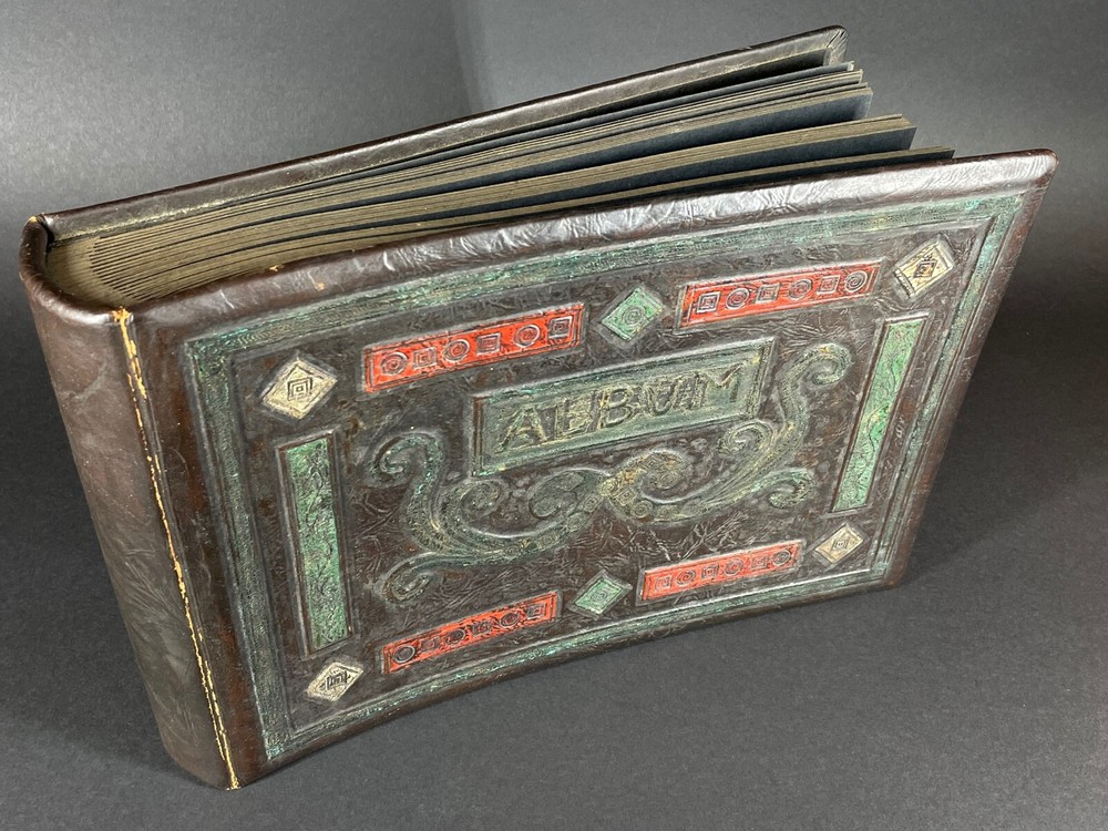 Large antique, circa 1915 photo album, leather covers, the front says ALBUM, with decorative tooling and embossing, the unused black paper pages are bound in book style, back in the day, photographs were attached with those little black paper corners, amazing to find an album that was never used, measuring 9-1/2" high x 13-1/2" across x 2.5" thick, good condition, light wear, was in storage for many years, from a local estate. Email with questions. Visit our eBay Store for our current 7-day auctions and "Buy it Now" listings with the "Make an Offer" feature. Bidders, please read the following "fine print": Payment is expected within 3 days and eBay now allows sellers to cancel sales after the 4th day of non-payment. When we have to cancel a sale because of non-payment, we will also block the bidder from future bidding with us. We sell estate items on consignment, so we cannot afford to offer free shipping. Shipping reflects the actual cost of shipping plus handling fees. Please do not ask us to reduce the shipping fees, however we will manually combine multiple items for a reduced domestic shipping fee if possible. We reserve the right to revise the shipping to charge more for large or heavy items when the destination state is west of the Mississippi such as California, also Florida & Texas, Alaska & Hawaii. INTERNATIONAL BUYERS: WE ONLY SHIP VIA EBAY'S INTERNATIONAL SHIPPING PROGRAM. WE CANNOT COMBINE MULTIPLE ITEMS FOR INTERNATIONAL SHIPPING. WE DO NOT SHIP DIRECTLY TO INTERNATIONAL CUSTOMERS. INTERNATIONAL BUYERS: YOU ARE LIABLE FOR YOUR COUNTRY'S CUSTOMS FEES. IF YOU DO NOT INTEND TO PAY, PLEASE DO NOT BID. Our physical brick & mortar gallery located in Royal Oak, Michigan for over 34 years, is closed on Sundays & Mondays. Any payments received for orders on those days will be processed on the following Tuesday afternoon. Our regular brick and mortar store hours are Tuesday through Saturday from 12 noon to 6pm. We pack and ship paid eBay items on Tuesday, Thursday & Saturday afternoons. Thank you kindly!