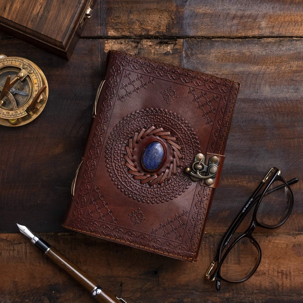 Description Bring out your inner creativity with the NomadCraftsCo. Antique Leather Bound Writing Journal for Women and Men!The deckle edged vintage paper looks and feels like a thousand years old is treat to write on. The paper is made from environmentally friendly cotton and jute canvas. The paper is acid-free and pH nuetral therefore is a timeless piece of art. No more worries about ink messing up the pages either. The thick pages are ideal for pen, pencil, crayons and even charcoal! We can guarantee no bleed through!The vintage leather journal is a perfect sketchbook, book of shadows,grimoire, wicca, calligraphy journal, scrapbook, art journal, leather sketchbook and manymore.The leather bound journal made from antique paper is a treasure that you can pass down the generations.The leather is soft and supple to the touch and smells amazing. The leather will age over time and will get better and better. Its the perfect travel companion to cherish memories or even to jot down precious ideas and there is not better way preserve your memories for your future generations.Get Yourself The Most Valuable Travel Companion Today – Never Have To Travel Alone Again.Handcrafted by skilled artisans with a lot of love and care. Here’s Why This Vintage Leather Bound Writing Journal Is What You Are Looking For:1. Soft Luxurious Durable and Leather Cover with Semi Precious Stone 2. 240 Pages of Thick Antique Vintage Cotton Paper which looks like thousand years old. 3. Sturdy Leather Binding Technique will make sure that the pages never fall off. 4. Medium size 7 by 5 inches rustic scrapbook/organizer easily portable.5. Being hand-made, no two journals are quite the same. Features: Product Details: Brand: NomadCraftsCo. Color: Red Brown Theme: Book Cover Material: Leather Style: Unique,Vintage Ruling Type: Plain Special Feature: Lock Number of Items: 1 Pattern: Printed Number of Sections: 1 Manufacturer: NomadCraftsCo. Brand: NomadCraftsCo. Item Weight: 2.61 pounds Package Dimensions: 12.09 x 10.04 x 2.2 inches Item model number: NOMAD-VIN-STN-A4 Color: Red Brown Cover Material: Leather Number of Items: 1 Size: 11.5" x 8.25" (A4) Ruling: Plain Manufacturer Part Number: NOMAD-VIN-STN-A4 Date First Available: October 18, 2020 Handling We will ship all orders within 3 business day of payment. Delivery We Do Not Ship Outside of the Continental US. Return Policy All items qualify for returns within 30 days of receipt. Buyer is responsible for return shipping on any item that is not damaged. Feedback We take our reputation seriously, we buy and sell online, so we understand the value of trust. If you are unsatisfied with your order, please contact us and we will work with you to resolve it to your satisfaction.