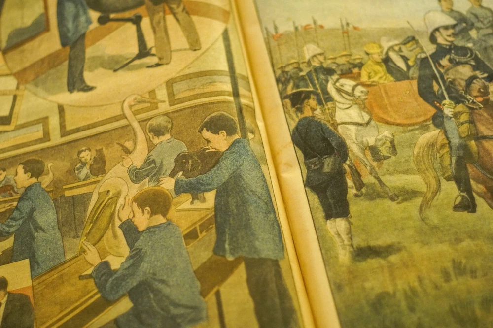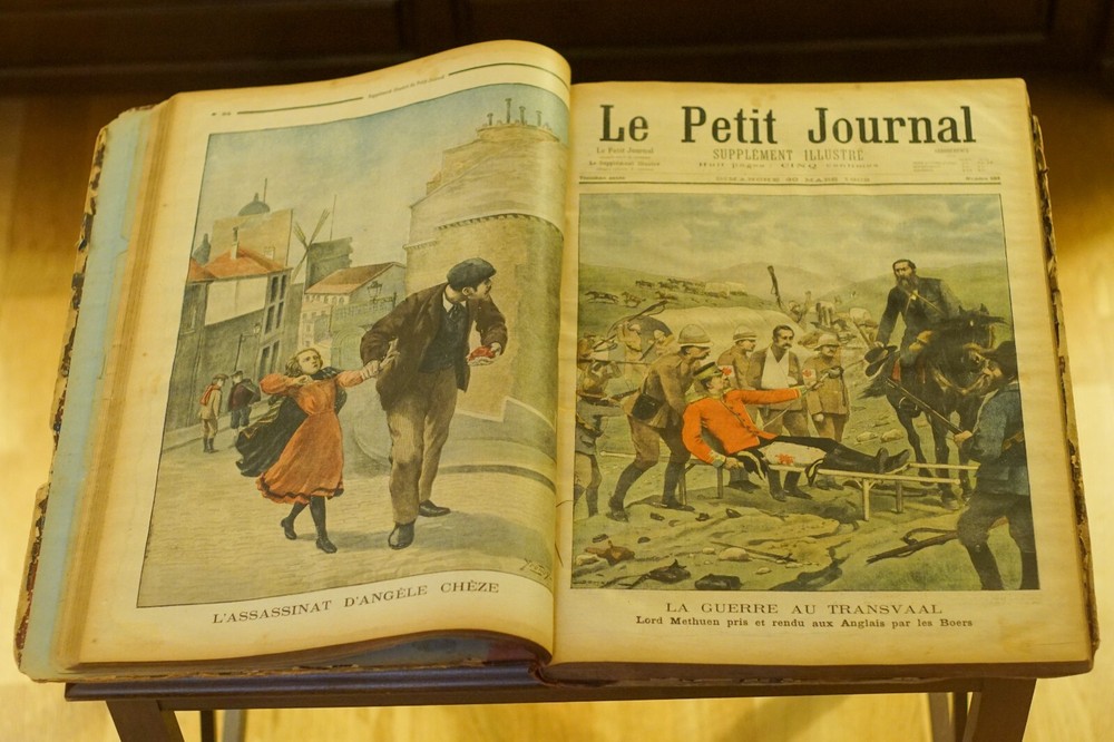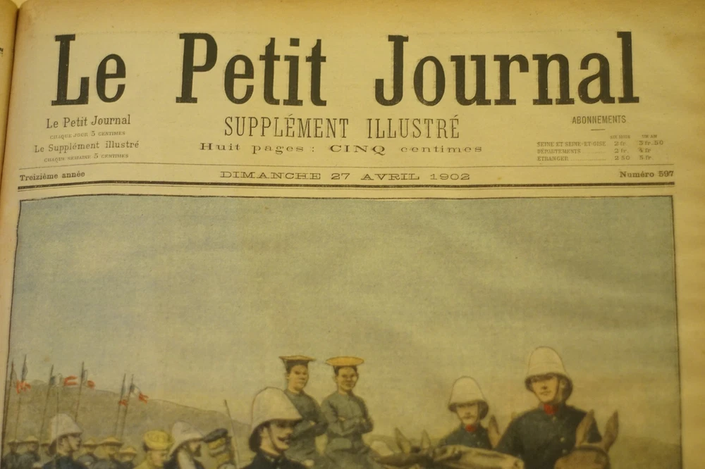 This incredible 1902 volume of *Le Petit Journal* is a true collector's gem! All 52 issues are beautifully preserved in stunning gazelle-skin binding, showcasing history in pristine condition for over a century. The large 34x44 cm format makes every page a visual delight, perfect for enthusiasts of rare newspapers. A rare find you won’t see elsewhere—message for details!