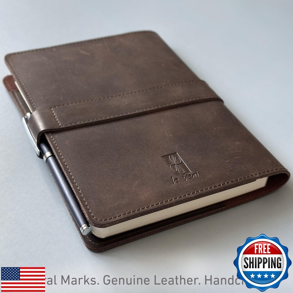 Le Vent Refillable Genuine Leather Journal, Writing Notebook, 2 Bound Notebooks, Lined and Blank, 200+200 Pages, A5 Cover, Handmade, for Poetry, Writers, Business, Work, Study, College, and Daily Notepad Features Crafted to Endure – Crafted from genuine vintage leather, this leather journal refillable includes two 200-page A5 notebooks and a snap closure—built to last and made for everyday use. Write Without Waste – The refillable leather journal saves money and waste—just swap A5 notebooks when full. Thick 100gsm paper prevents ink bleed and keeps notes neat and professional. Flat-Lay Functionality – A structured journal leather with flat-lay binding solves the hassle of flimsy covers. Perfect for meetings, writing, or daily planning without distraction. Smart Interior Design – Designed for productivity, this notebook leather includes a pen loop, inner pocket, and card slots—everything you need, all in one organized place. Gift-Ready Elegance – The perfect gift set: this leatherbound notebook journal comes with a leather keychain, bookmark, and gift box—professional, thoughtful, and ready to impress. Shipping Free & Fast Shipping: We offer free shipping to most of the USA with a normal delivery time of 3-7 days. However, due to the current situation, additional delivery time (up to 3 weeks) may be required for some items. Alternative Carriers: We may use alternative carriers (e.g., USPS, FedEx, UPS) to ensure your package arrives safely and on time. Due to the use of multiple carriers, we are unable to provide a tracking number automatically. Handling Time: Orders are processed and shipped within 1-2 business days of receiving cleared payment. Shipping Restrictions: Shipping to Alaska, Hawaii, Puerto Rico, Guam, and other US territories may incur shipping charges or delivery restrictions. Please contact us before ordering, or your order can be refunded/cancelled. State Restrictions: Certain items may not be shipped to California due to state regulations. Contact for Tracking Updates: If you require tracking updates or have any concerns about the delivery of your order, please feel free to contact us, and we will be happy to assist you. Return Policy 30-Day Hassle-Free Returns: If you are not completely satisfied with your purchase, you can return the item for free within 30 days of receiving it for a full refund or exchange. Easy Return Process: Contact us, and we will provide you with a prepaid return shipping label and detailed instructions. No Restocking Fee: There are no restocking fees for returns. However, the buyer is responsible for return shipping costs if the return is not due to a seller's error. Refund Processing: Refunds will be processed within 1 business day of receiving the returned item in its original condition. Payment We accept all major credit cards, PayPal, and Apple Pay for your convenience. Your payment information is secure and encrypted to ensure a safe and seamless transaction. Please complete your payment within 3 days of purchase to avoid any delays in shipping. Feedback Your feedback is extremely important to us. We strive to provide the best products and customer service possible. If you are satisfied with your purchase, please take a moment to leave us a positive review. If you have any concerns or issues with your order, please contact us before leaving negative feedback. We are committed to resolving any problems and ensuring your satisfaction. Contact Us If you have any questions or concerns, please feel free to reach out to our customer support team. You can contact us through the eBay messaging system. We are available Monday to Friday, 9:00 am to 5:00 pm EST, and we will do our best to respond to your inquiry within 24 hours. Thank you for supporting our small family business!