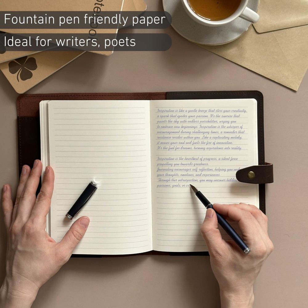 Discover an all-in-one solution with our A5 notebook cover set. Inside the box, you'll find an A5 notebook cover along with lined and blank notebooks, each containing 200 pages. Whether you're sketching, journaling, or planning, this versatile set has you covered. Additionally, enjoy the convenience of a leather bookmark and a leather key ring included in the set. This makes it a stylish and practical gift suitable for professionals, entrepreneurs, students, and creative individuals alike. With its durable construction and elegant design, this set is perfect for anyone seeking organization and inspiration in their daily life. Premium Genuine Leather Cover: Crafted from high-quality, soft, and supple genuine leather that feels amazing in your hands and develops a unique patina over time, offering a timeless and elegant look. Includes Two Versatile Notebooks: Comes with one lined and one blank notebook, each with 200 pages of thick, ink-proof paper that lays flat, making writing and sketching a pleasure. Customers love the quality and versatility of the paper. Perfect A5 Size for Portability: Measuring 5.5 x 8.2 inches, it’s the ideal size to carry in your bag, providing a perfect balance between portability and functionality. Fits standard A5 notebooks for easy refills. Thoughtful and Functional Design: Features a built-in pen holder, inside pocket, and card slots, ensuring all your essentials are at hand. The secure clasp closure keeps your journal safely closed. Durable and Long-Lasting: Customers praise the sturdy construction and the refillable design that allows for years of use, making it a sustainable choice for daily journaling, note-taking, or sketching. Versatile Use for Everyone: Ideal for writers, artists, professionals, students, and anyone who values quality craftsmanship. Use it as a diary, planner, sketchbook, or travel journal. Elegant Gift Packaging: Presented in a stylish box, making it a perfect gift for birthdays, graduations, anniversaries, or any special occasion. Many customers have given it as a gift and report that it was well-received. Additional Accessories Included: Comes with a leather bookmark and key ring, adding extra value and functionality—features that customers find thoughtful and useful.