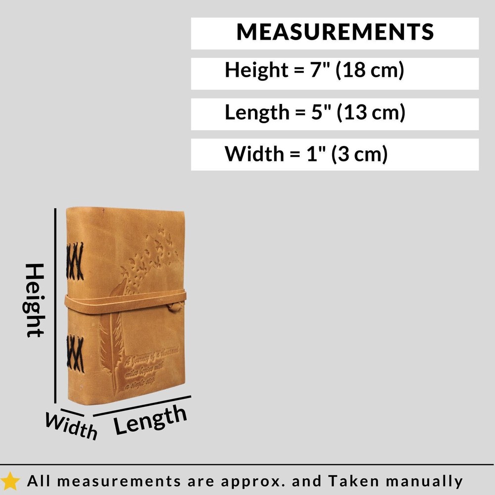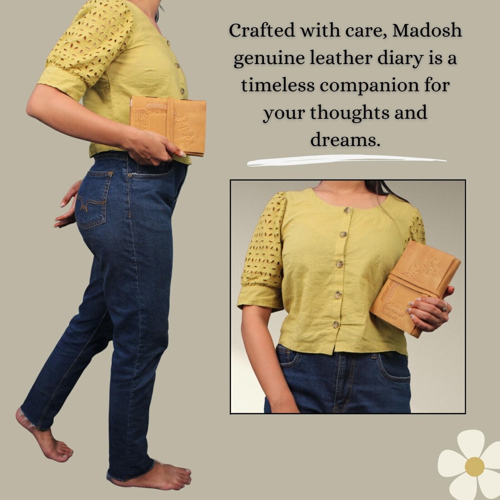 Welcome To MADOSH (Brand: Madosh- Mad Over ShoppingTM) Introducing the timeless leaf embossed leather diary, where classic charm meets artisan craftsmanship to create a personal sanctuary for your thoughts and memories. Crafted from genuine leather, this diary is more than just a notebook; it's a timeless piece that ages gracefully, becoming a cherished companion on your life's journey. Perfect for nature lovers, artists, and those seeking a tranquil sanctuary for their thoughts, this diary is a versatile companion. With 200 unlined pages made from high-quality, acid-free paper. Safeguard your expressions with the durable leather strap closure, ensuring that your diary remains a private for you. SIZE & FIT: Height: 7“(18 cm) | Length: 5“(13 cm) | Width: 1“(3 cm) SPECIFICATIONS: Genuine leather bound journal Leaf embossing Leather strap closure 200 pages Handmade Country of origin: India NOTE: 100% Genuine leather diary. Color may slightly vary from pictures. 100% recycled cotton acid free paper used in diary.