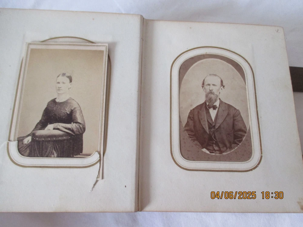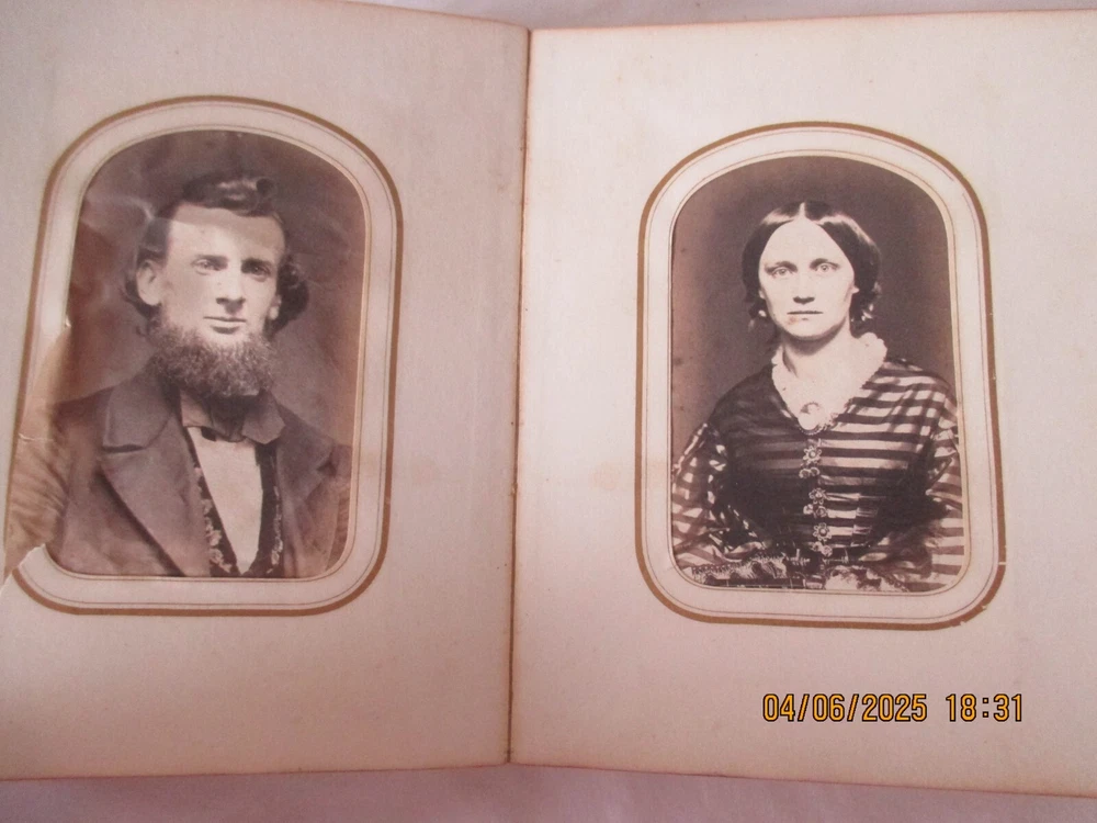 Leather Bound Clasps 1800's Civil War Era Photo Album 26 Photos * Photographs Books * Leather Bound * Metal Clasps * Estimated time period mid to late 1800's, Civil War Era * 26 photos * Measures approx. 6" x 5" x 2.25" * The pages are in good condition, the spine of the book has become detached from the cover. * Please see pictures for condition. * * The pictures of the item are part of the description* *I try to describe my items as honestly and clearly as possible. * We strive to provide quality, vintage, gently used and new clothing to the eBay market. * For vintage items, we recommend cleaning. * Since some of these items are used, occasionally, an imperfection may go unnoticed. If this occurs, please contact us and we can discuss options. * Please let me know if you have any questions regarding an item. * I do accept returns; but not for wrong size or changed mind. Buyer pays shipping charges. Make sure you check measurements, or ask. *Please submit payment within 3 days, so that I can ship out to you quickly. If I do not receive payment within 5 days, I will cancel your order, unless you contact me. * I want you to be happy with your purchase. Please let me know if you are not. Thank you
