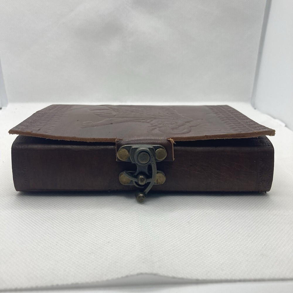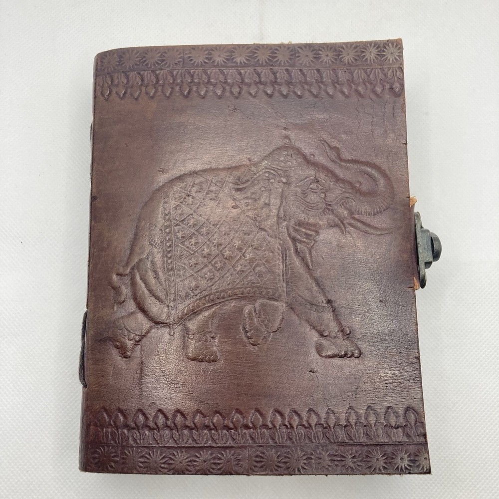 Leather Bound Elephant Embossed Journal With Latch Brown Covers. Condition is Good. Sent with eBay Postage Labels....