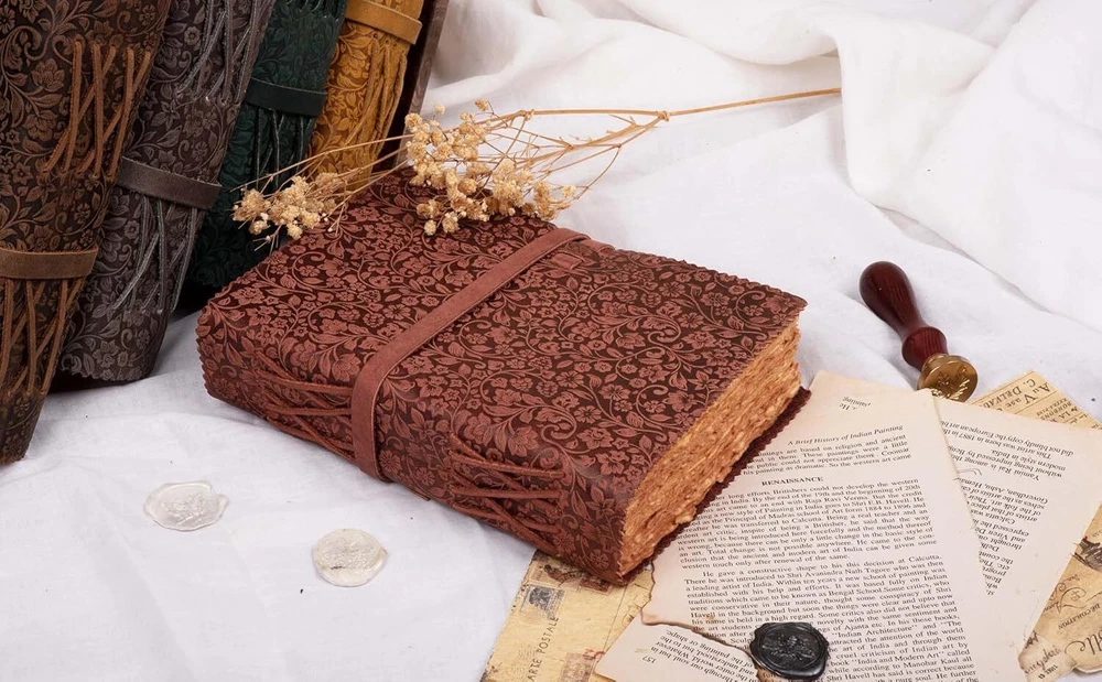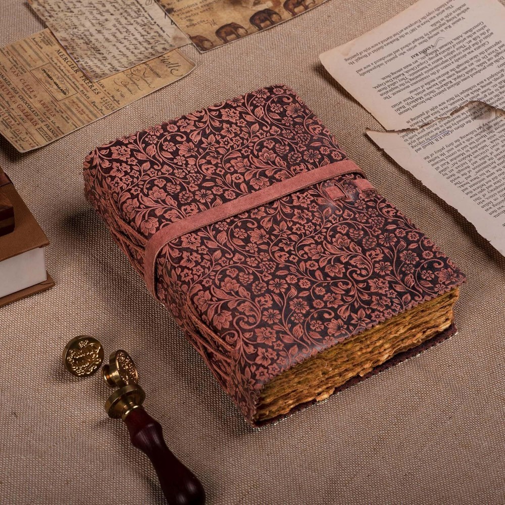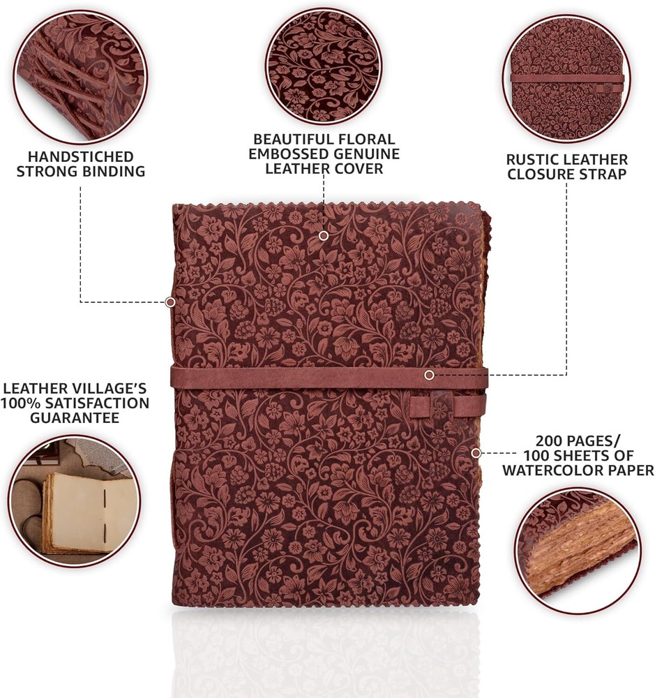 Free eBay listing template designed by dewiso.com Leather Bound Floral Embossed Journal for Women Men - 200 Pages, 6”X4”(A6), Fuchsia - Book of Shadows, Vintage Blank Paper Travel Diary, Notebook for Writing, Drawing, Sketchbook by LEATHER VILLAGE FREE AND FAST SHIPPING! About this item Genuine Leather Journal: Luxurious full-grain leather cover, naturally tanned for an authentic feel. Embrace the craftsmanship with this durable, Floral embossed leather notebook, ideal for writers, travelers, and journal enthusiasts seeking a premium writing experience. Handcrafted Paper: 200 pages of thick, handmade cotton paper, suitable for all pens and paints. Acid-free, smooth, and no-bleed, perfect for writing, sketching, Watercolors, doodle, and painting, enhancing the creative process for artists and writers. Sturdy Binding: Secure hand-stitched leather binding with a classic leather belt closure ensures your notes and drawings remain intact. Reliable and robust, this journal is a trusted companion for daily reflections, sketches, or as a travel diary. Perfect Gift: A thoughtful and lasting gift for any occasion - birthdays, graduations, or holidays. Ideal for students, Artist, creative minds, and anyone who appreciates the art of journaling. A versatile and cherished gift that inspires creativity and captures memories. Quality Assurance: Leather Village is committed to excellence, offering high-quality materials and craftsmanship in each journal. Our customer satisfaction guarantee ensures a superior product experience, backed by our dedication to quality and service. Product We offer a 30-Day Return Policy on items which you are not completely satisfied with. You have the option for a full-refund or an exchange of the item. No returns are available on items shipped outside of the US . Shipping We offer Free Shipping to the US and ship within 2 business days of payment, usually sooner. We use UPS express shipping. That's why your products are usually delivered within 3 days . Contact We try our very best to make sure every customer is completely satisfied. If there's a problem , message us! We're happy to help. 24/7 live chat available.