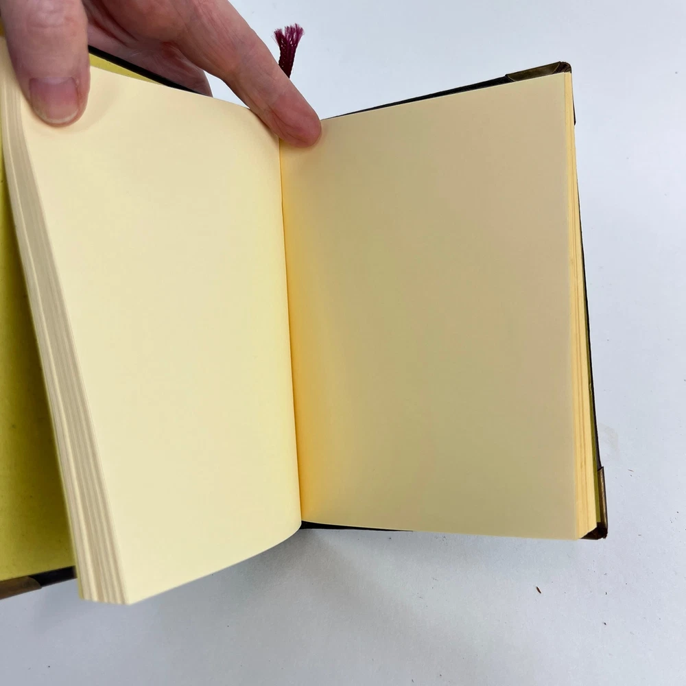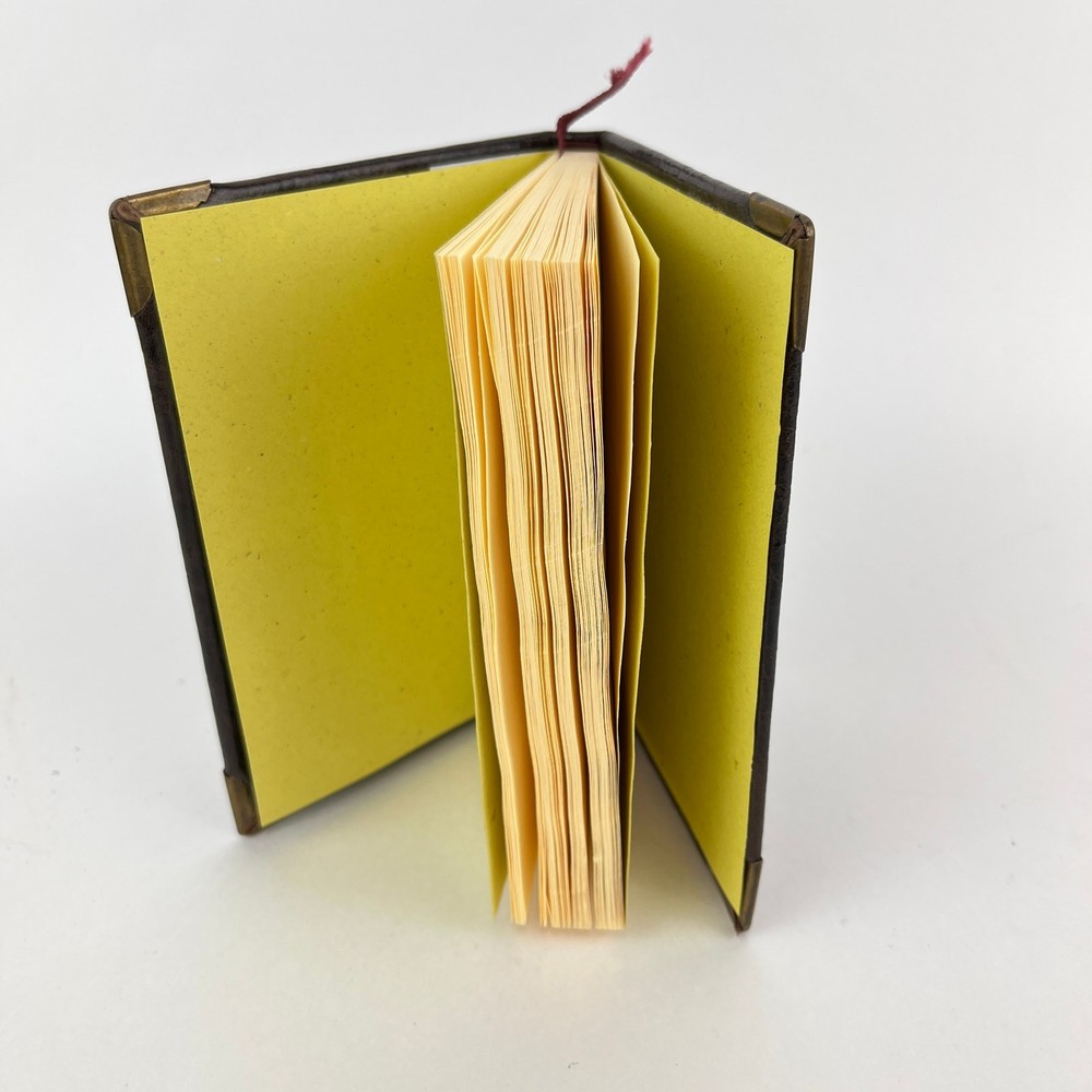 <![CDATA[<div>This small journal, sketch book, is about 6.5" x 4.5" and has approximately 90 and 100 pages. Wrapped in dark brown leather with cream color stitching and brass corners. It has an embroi...
