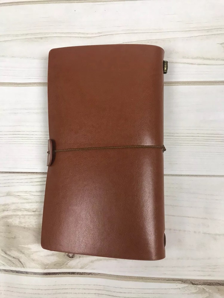 Brown Leather Bound Journal with Blank Paper, Graph Paper, Zip Pouch, & Card Holder Inserts