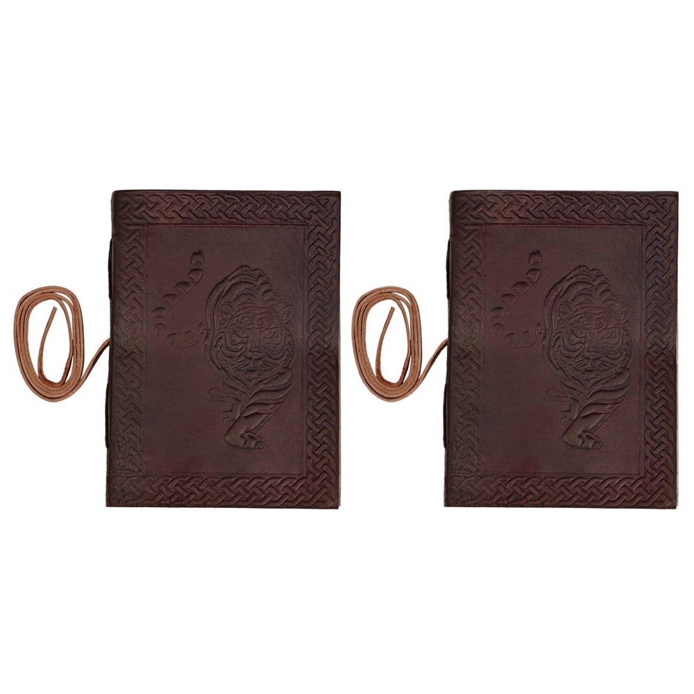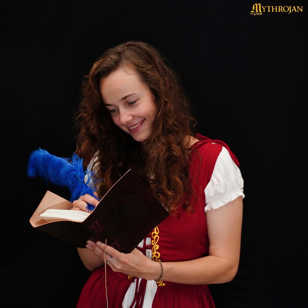 Capture the essence of the medieval era with our Mythrojan Leather Bound Journal Set. Handmade with care and attention to detail, this vintage-inspired combo is the perfect gift for both men and women. Each journal features a beautifully embossed tiger design on its brown leather cover, evoking a sense of adventure and mystery. IDEAL SIZE - 7" x 5" Perfect Size for Pocket, Pouch, Or Purse. FEATURES - Its compact size makes it easy to carry around or slip into a bag but big enough to express all your creativity! 100% HANDCRAFTED FROM THE BEST LEATHER - Reminiscent of medieval manuscript our leather journals are only crafted from the finest, supple split leather and richly embossed to give them their ELEGANT MEDIEVAL LOOK: every single of our leather journals is built-to-last and 100% handmade to ensure both authentic look and unique vintage decorative appeal. CAPTURE AND SHARE YOUR IDEA BEFORE THEY FLY AWAY: our beautiful leather notebook journal can be used as an appointment book, daily diary, travel journal/notebook/sketchbook for yourself, families and friends… Or easily become the key accessory in your next costume or cosplay! Natural And Recycled Materials. Compatible with Any Kind Of Ink. Acid free, Chemical free, Archival Quality. Handmade Recycled Cotton Blank Paper Compatible With Multiple Mediums. Unique high quality embossing. LIFETIME GUARANTEE - Providing you with high-quality products is what we do, and your FULL SATISFACTION and happiness are of utmost importance to us! All warranty issues are handled directly by Mythrojan. If you receive something that is not up to your expectations, CONTACT US, and we will work with you to resolve the problem. If, over time, a Mythrojan product no longer lives up to your expectations, CONTACT US, and we will work with you to assure SATISFACTION! About Us: Mythrojan has been a manufacturer of historical and fantasy costumes for more than 20 years. We seek to design, test, and continually improve our own line of quality products. Repeatedly working with the film industry has just strengthened our passion and enthusiasm. Now we are breaking out of the fair tent to bring things to you in your home, online. Same great products, same quality materials, and even better prices! Shipping: Most orders will ship out within 1-2 business days of ordering. Your order will be shipped with Standard Service. Once shipped, orders are generally received within 7 business days. We do not ship on Saturdays, Sundays, or holidays. While we will do all we can to ensure your order is delivered on time. Mythrojan cannot be held responsible for conditions beyond our control such as severe weather, service interruptions, etc. Return Policy: Returns Policy is 30 Days of Free Returns based on the original purchase date.