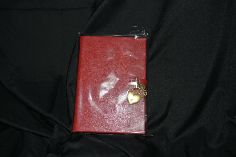 Red Leather Bound Diary / Journal. Heart Shaped Keyed Brass Lock. Very Attractive Presented in a Beautiful Gift Box. Offered at: $40.00...