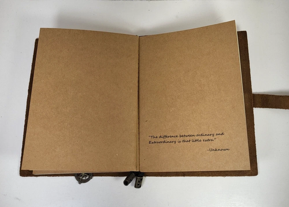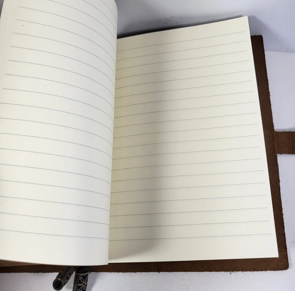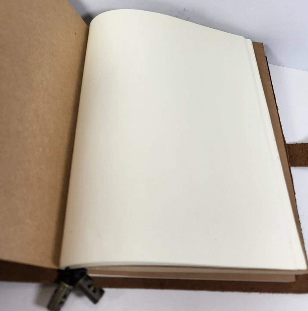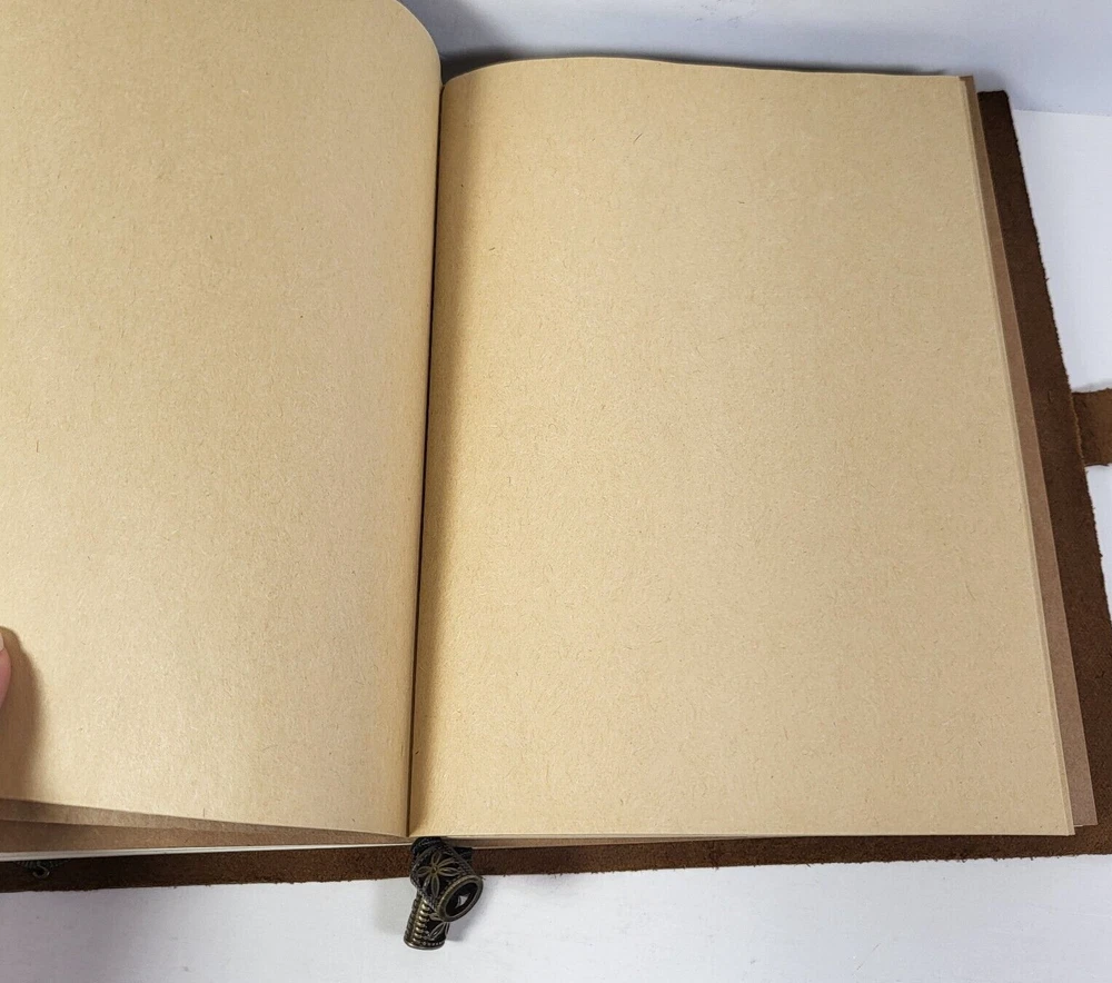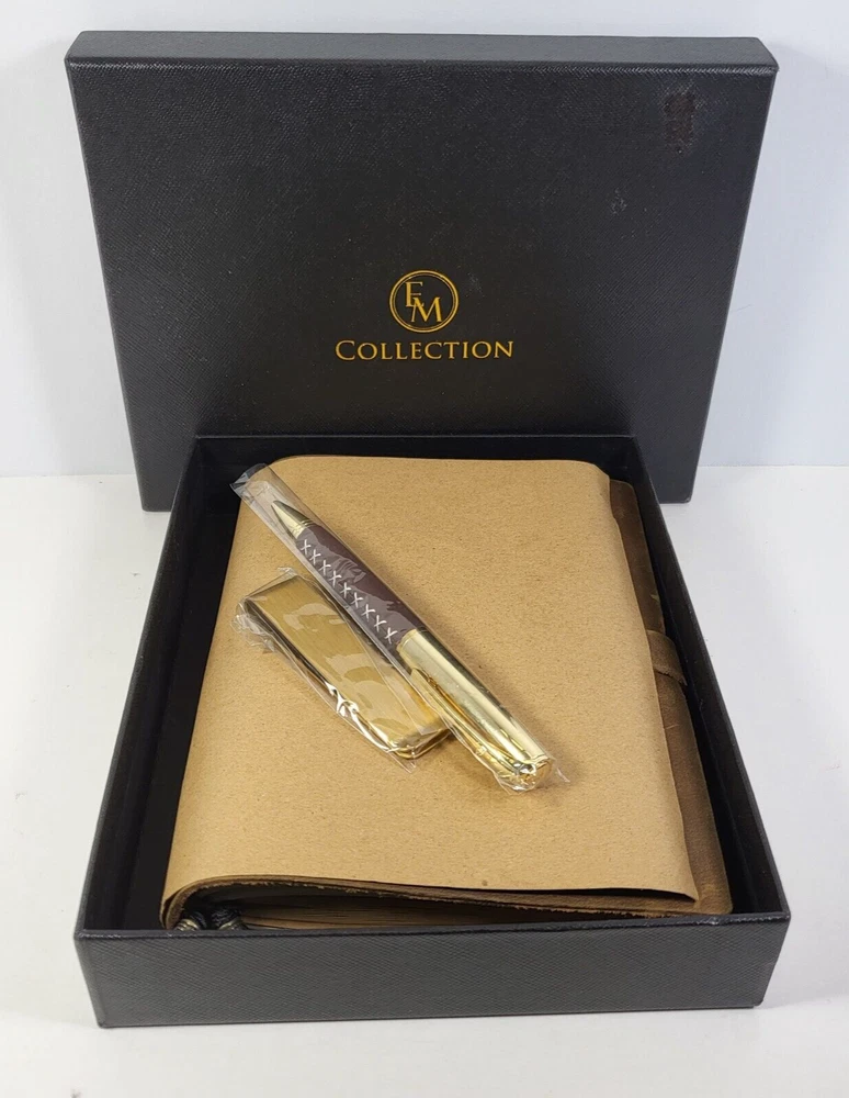 eCommerce Item Description Welcome to jackofall05 eBay Store! EM Collection Leather Bound Journal Gift Set $49.95 + Shipping. Some scratches on leather. Handmade Antique Style Leather-bound Journal Includes: Leather pen Clip (money clip ?) Compass Divider (bookmark) Measures: 7" Tall, 5¼" Wide Journal is 3 notebooks in one: Blank white Blank brown Lined white Click here to explore much more from the jackofall05 store! PLEASE NOTE THAT ALL ART AND CRAFT SUPPLIES ARE SOLD IN AS-IS CONDITION. WE STRIVE TO PROVIDE DETAILED PICTURES AND DESCRIPTIONS OF EACH ITEM TO HIGHLIGHT ANY FLAWS IT MAY HAVE. IT IS RECOMMENDED THAT PROSPECTIVE BUYERS CAREFULLY REVIEW ALL PICTURES AND DESCRIPTIONS BEFORE MAKING A PURCHASE. COLOR OF ITEM MAY DIFFER SLIGHTLY DEPENDING ON YOUR MONITOR OR PHONE LIGHTING/HUE SETTINGS.