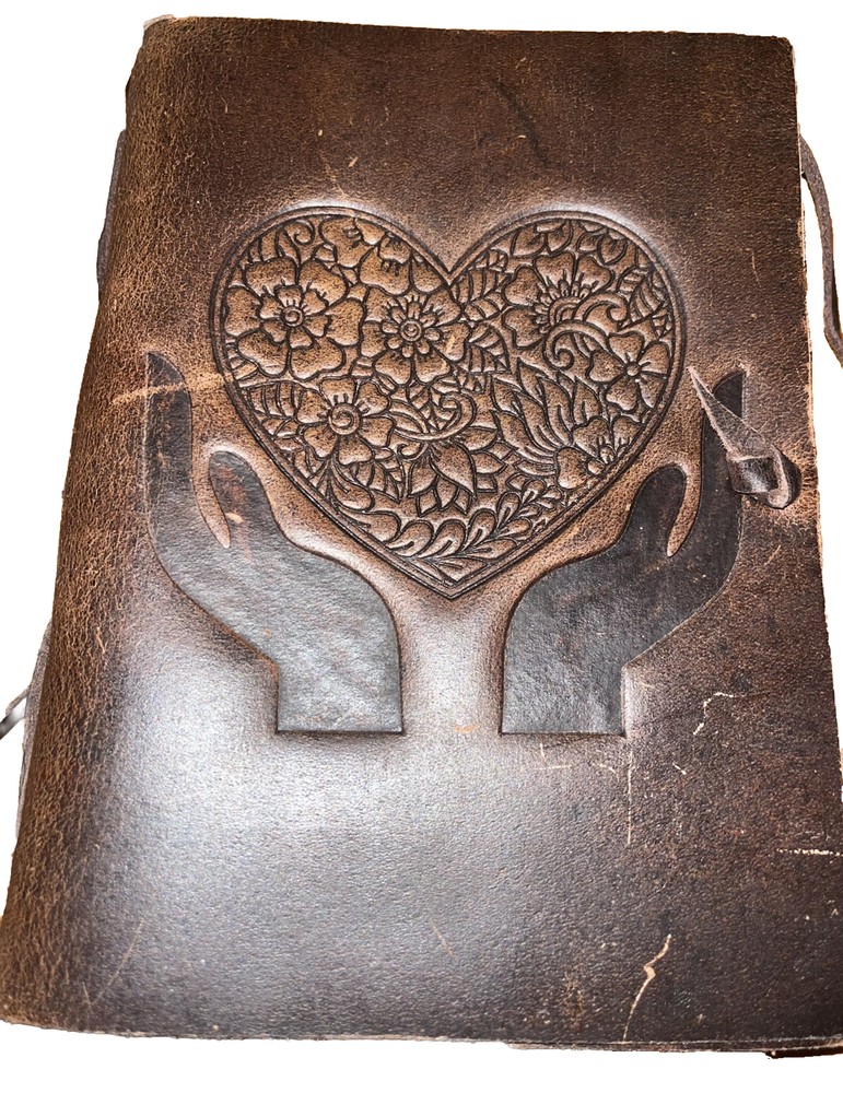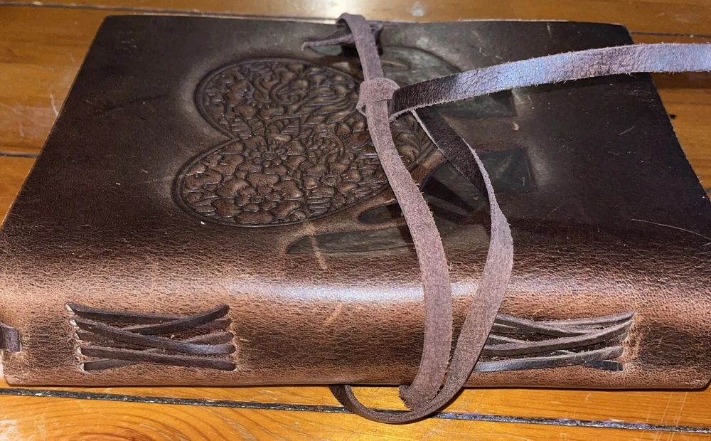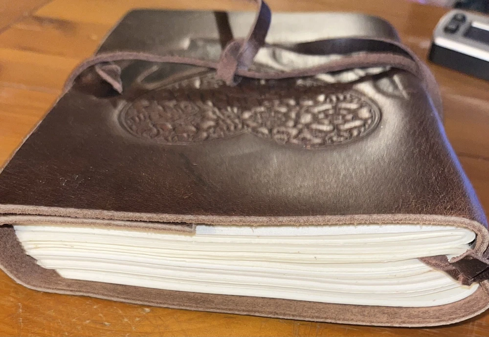 Leather Bound Journal Spell Book Diary Notepad W/ Page Marker Tie Closure First 2 pages have writing. Pages appear dirty & torn. See photos...